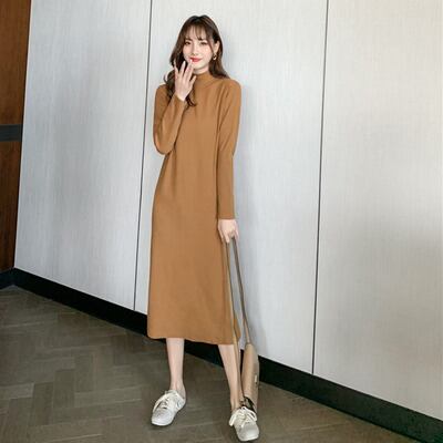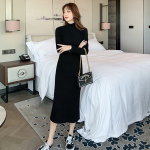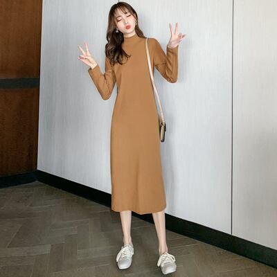 ワンピース ロングスカート ロング 袖あり 長袖 ハーフタートルネック スリム タイト 細身 ストレート スマート かわいい 大人可愛い シンプル カジュアル 大人 おしゃれ お洒落 かっこいい 大人 クール 無地 春 秋 冬10代 20代 30代 レディース 女性用 女の子 学生 通学 デート お出かけ 女子会 お泊まり 休日 イベント リゾート 旅行 着回し 普段使い お揃い 韓国 韓国系 ファッション S M LXL 2XL アプリコット ブラック ブラウン