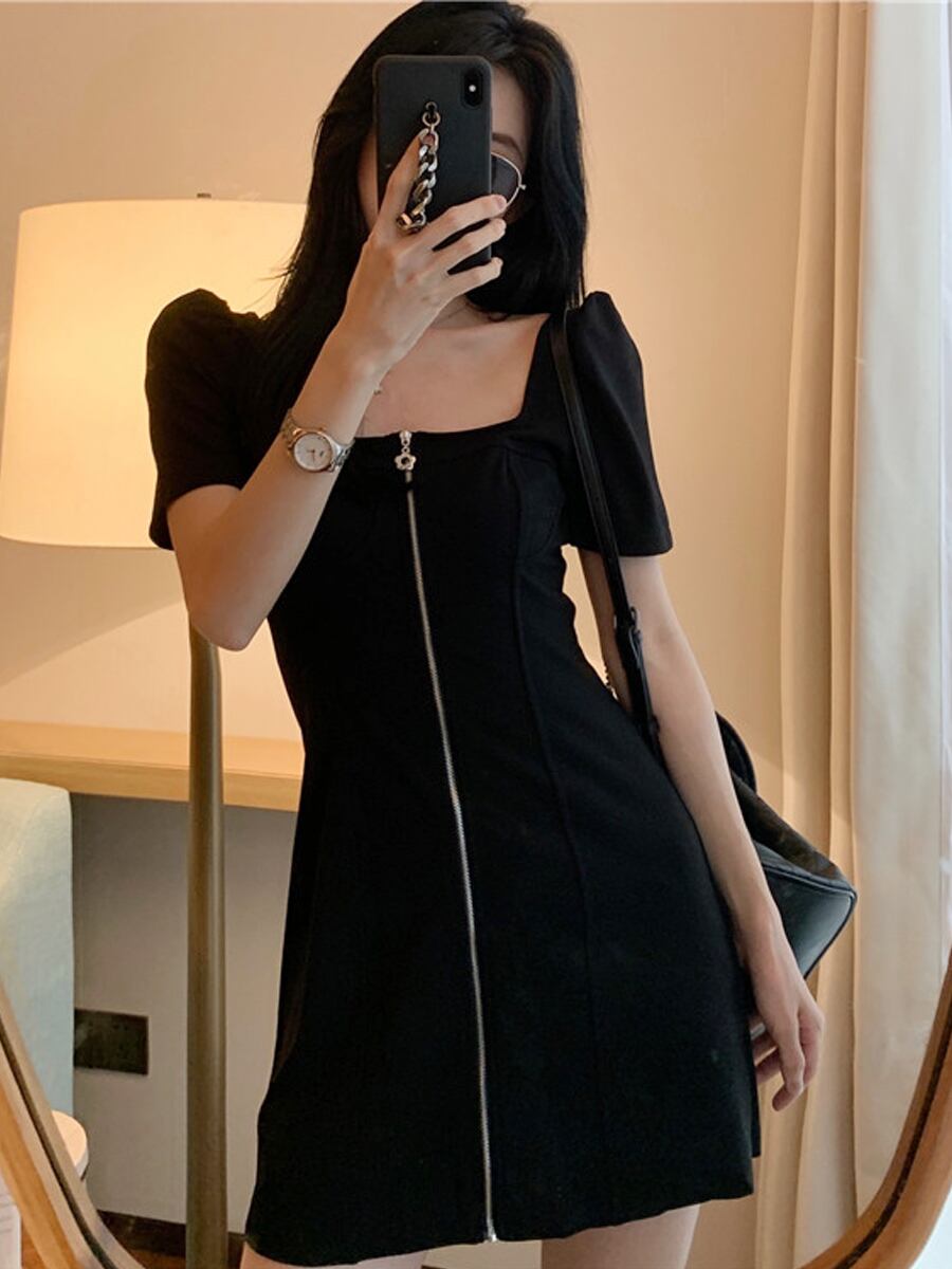ワンピース ショート ショート丈 袖あり 半袖 タイト 細身 ファスナー 大人可愛い シンプル 大人 おしゃれ かっこいい 無地 夏 10代 20代 30代 レディース 女性用 デート お出かけ パーティー イベント 普段使い 韓国 韓国系 オルチャン ファッション コーデ スタイル モテ L XL 2XL 3XL