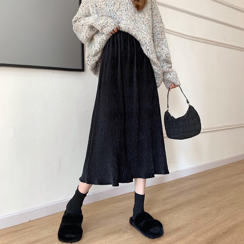 スカート ボトムス プリーツスカート フレアスカート ミモレ ミモレ丈 ミディアム丈 セミフレア Aライン ハイウエスト ウエストゴム 伸縮性 かわいい 大人可愛い きれいめ シンプル 大人 上品 おしゃれ お洒落 大人可愛い 大人女子 ラブリー キュート ガーリー エレガント とろみ感 抜け感 無地 クリスマス バレンタイン 10代 20代 30代 40代 レディース 女性用 ママ マタニティ 通勤 学生 通学 デート お出かけ 女子会 休日 イベント 旅行 着回し 普段使い モテ ブラック グレー