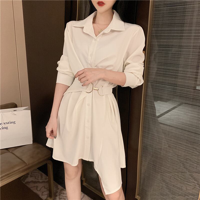 ワンピース シャツ シャツワンピース ミディアム丈 袖あり 長袖 襟付き ポロカラー ベルト ハイウエスト 薄手 かわいい 大人可愛い きれいめ シンプル カジュアル おしゃれ 大人女子 こなれ感 ラフ ラブリー キュート 個性的 無地 フラワー 夏 10代 20代 レディース 女性用 OL 通勤 学生 通学 デート お出かけ お泊まり 休日 アウトドア イベント リゾート 旅行 レストラン 着回し 普段使い ファッション コーデ スタイル 楽ちん プレゼント ワンサイズ 色展開 ホワイト ブラック