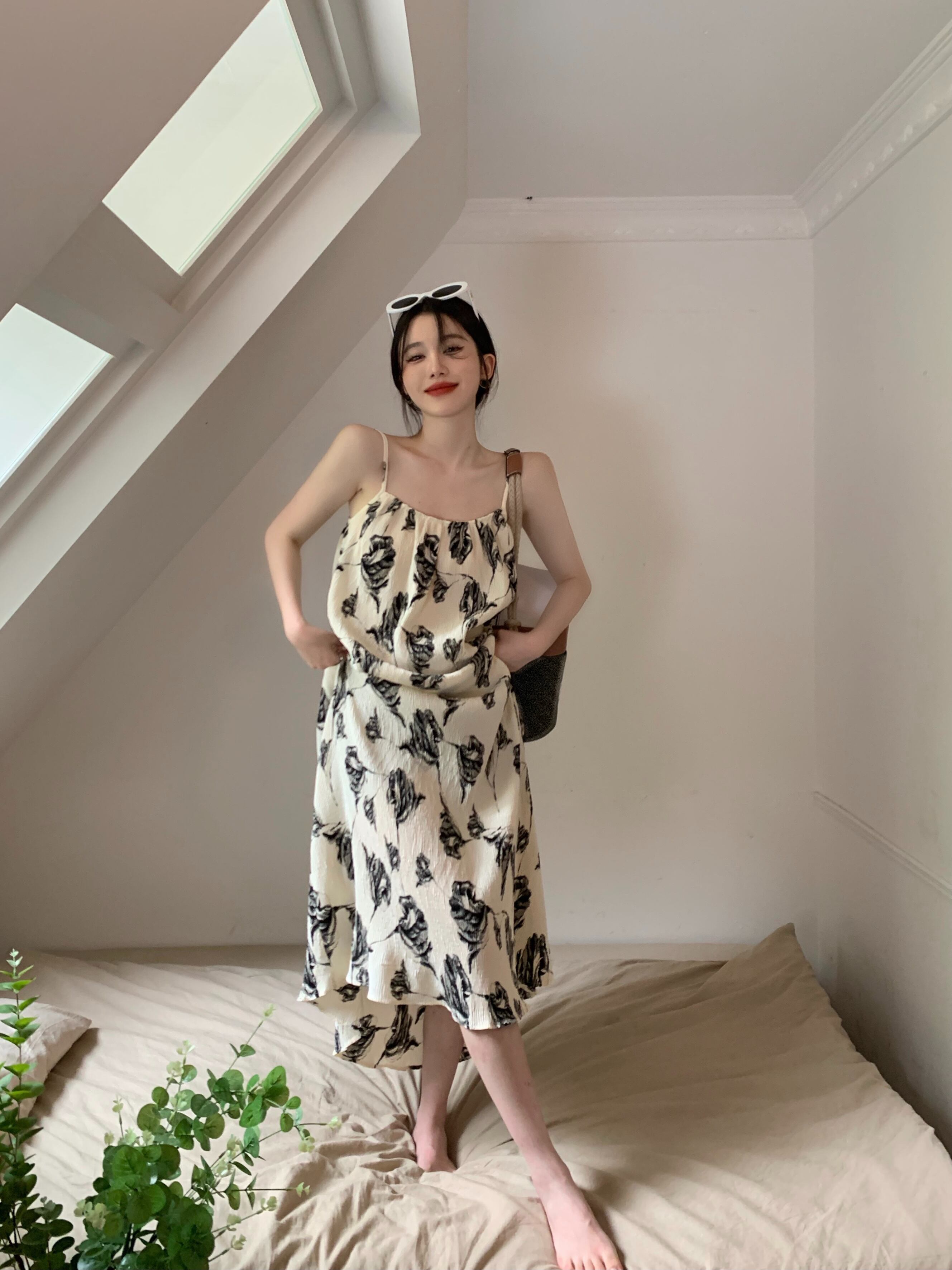 ワンピース ミモレ 袖なし ノースリーブ 襟なし Aライン かわいい 大人可愛い カジュアル 大人 上品 おしゃれ レトロ アジアン ラフ 柄 夏 10代 20代 30代 レディース 女性用 デート お出かけ 女子会 アウトドア イベント リゾート 旅行 海 普段使い オルチャン ファッション コーデ スタイル モテ 流行 インスタ映え ワンサイズ