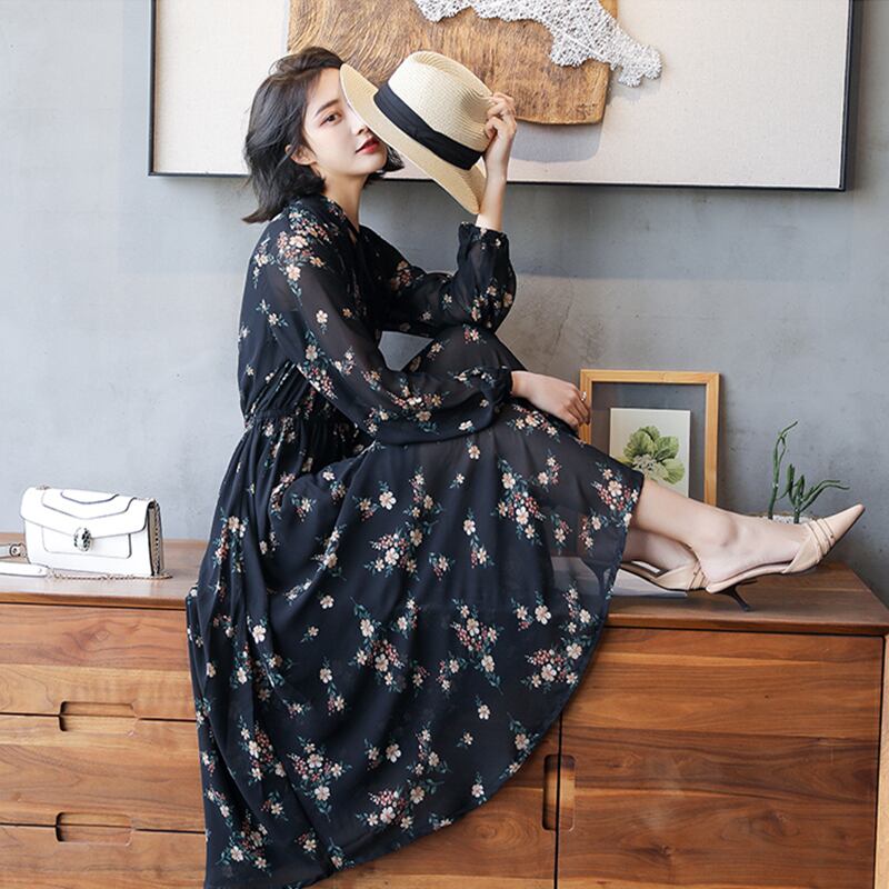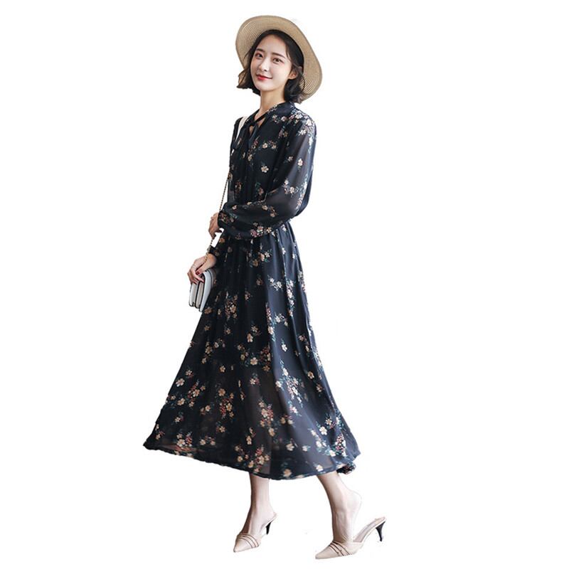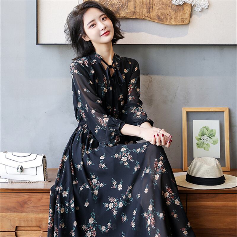 ワンピース フレアワンピース ミモレ ミモレ丈 袖あり 長袖 フレア Aライン シフォン ウエストリボン かわいい 大人可愛い きれいめ シンプル 大人 上品 柄 花柄 春 夏 秋 10代 20代 30代 レディース 女性用 デート お出かけ 女子会 パーティー イベント リゾート ショッピング 普段使い 韓国 韓国系 オルチャン ファッション コーデ モテ トレンド 流行 インスタ映え S M L XL 2XL