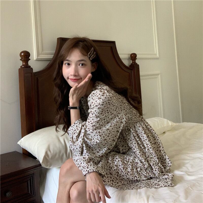 ワンピース ショート ショート丈 袖あり 長袖 ラウンドネック Aライン ハイウエスト かわいい 大人可愛い シンプル カジュアル 大人 おしゃれ お洒落 レトロ 大人女子 こなれ感 柄 花柄 秋 10代 20代 30代 レディース 女性用 デート お出かけ 女子会 ショッピング 普段使い 韓国 韓国系 オルチャン ファッション コーデ スタイル モテ 流行 インスタ映え ワンサイズ 色展開 黒 ブラック ベージュ