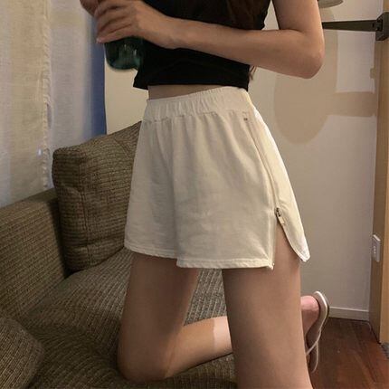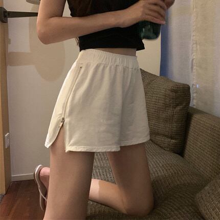 パンツ ズボン ショート ショート丈 ワイド ファスナー かわいい シンプル カジュアル おしゃれ お洒落 ラフ スポーティー 無地 夏 10代 20代 30代 レディース 女性用 お出かけ 運動 ジム 普段使い 韓国 韓国系 オルチャン ファッション コーデ スタイル 楽ちん モテ 美脚 M L XL 2XL 色展開 白 ホワイト 黒 ブラック 灰色 グレー