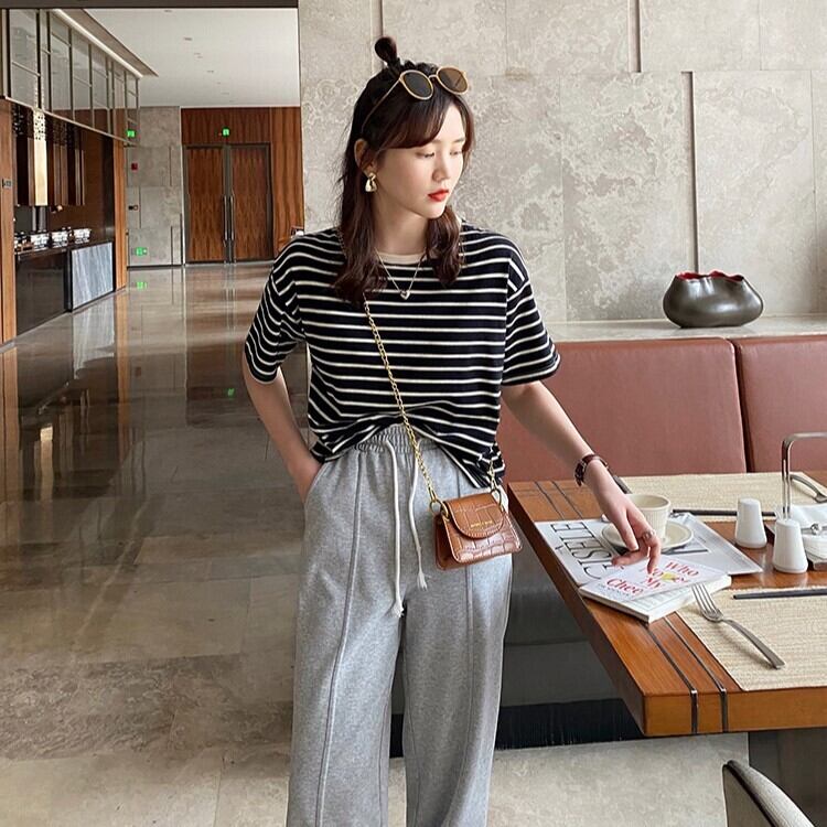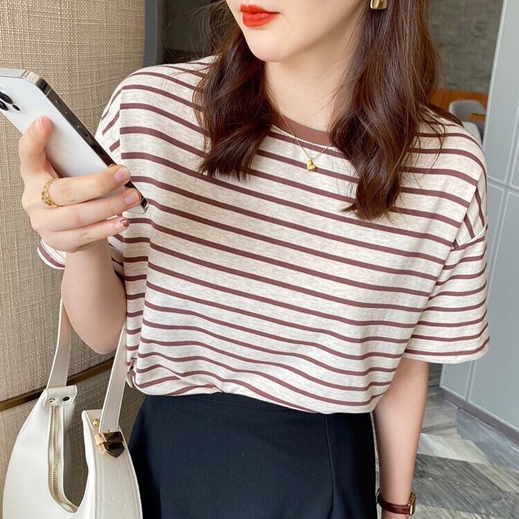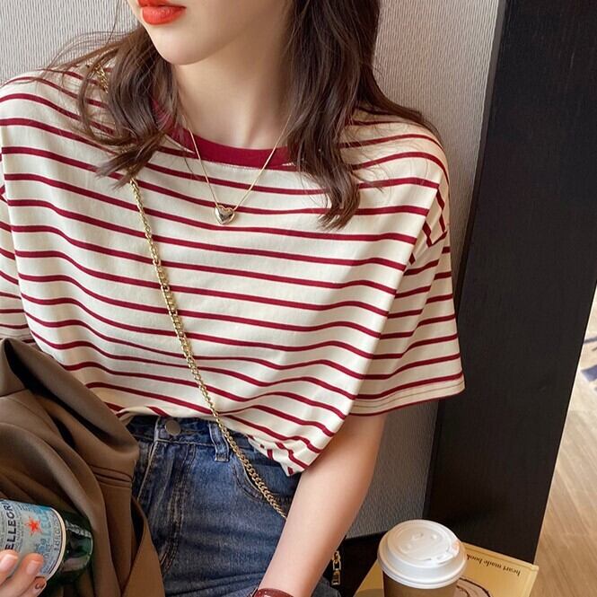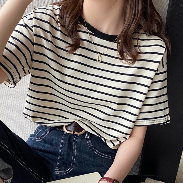 ボーダーTシャツ トップス Tシャツ カットソー 袖あり 半袖 ラウンドネック 襟なし ストレート Iライン 薄手 かわいい 大人可愛い カジュアル 大人 おしゃれ お洒落 レトロ 大人可愛い 大人女子 こなれ感 ラフ マニッシュ キュート ガーリー 存在感 とろみ感 抜け感 ボーダー 夏 10代 20代 30代 40代 50代 レディース 女性用 ママ 学生 通学 デート お出かけ 公園デビュー 休日 アウトドア イベント 旅行 着回し 普段使い 重ね着 楽ちん モテ S M L XL カラバリ