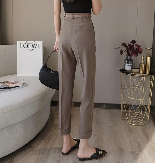 ボトムス ストレートパンツ クロップドパンツ テーパードパンツ スラックス 9分丈 スリム ベルト ウエストマーク ポケット ハイウエスト ウエストゴム 大人可愛い シンプル カジュアル 大人 上品 お洒落 大人女子 こなれ感 クール エレガント 主役級 フォーマル 抜け感 無地 春 夏 秋 20代 30代 40代 ママ 通勤 学生 デート お出かけ 女子会 休日 旅行 着回し 普段使い 重ね着 韓国系 モテ 定番 トレンド 流行 インスタ映え S M L XL カーキ ブラック グレー ホワイト