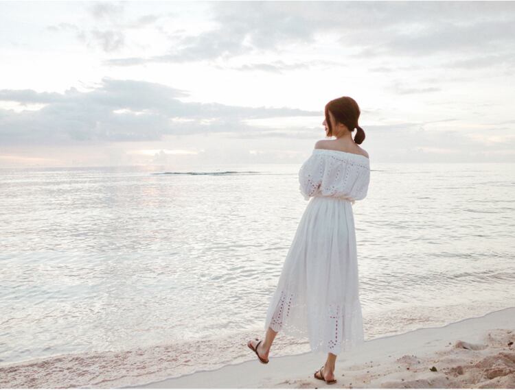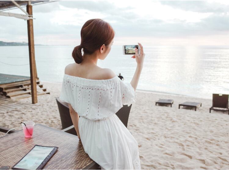 リゾートにピッタリのオフショルフレアーワンピースです。真夏の海辺を歩けば、スカート部分がふわっと翻ってとても素敵なデザイン。着やすくて可愛いく人目を惹く事、間違いなしです!リゾート地の解放感をワンピースと一緒に味わってみてはいかがですか?