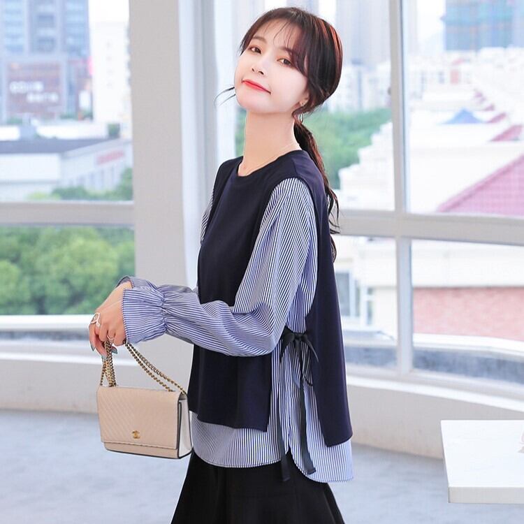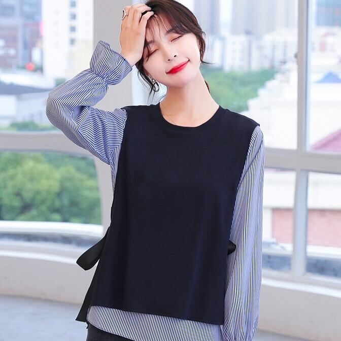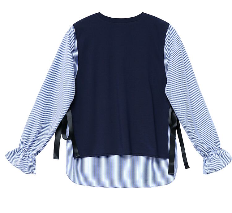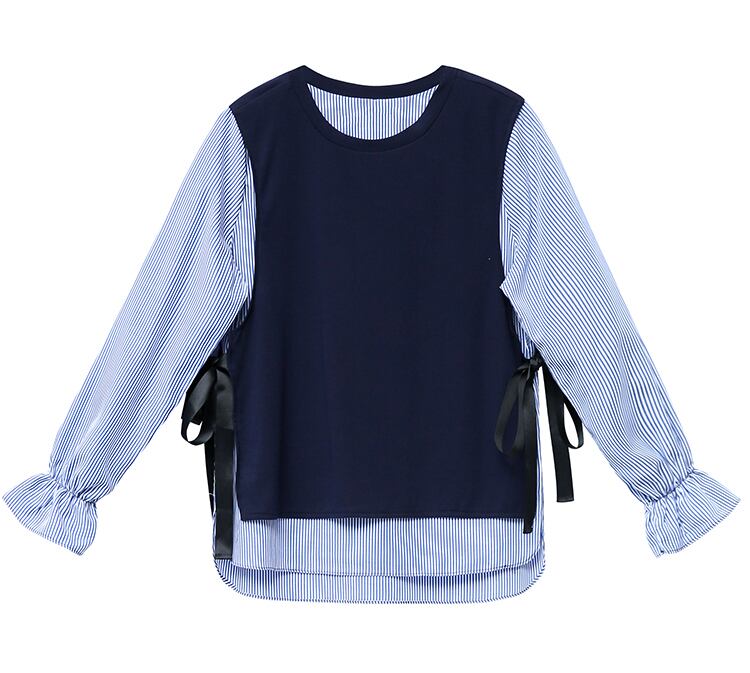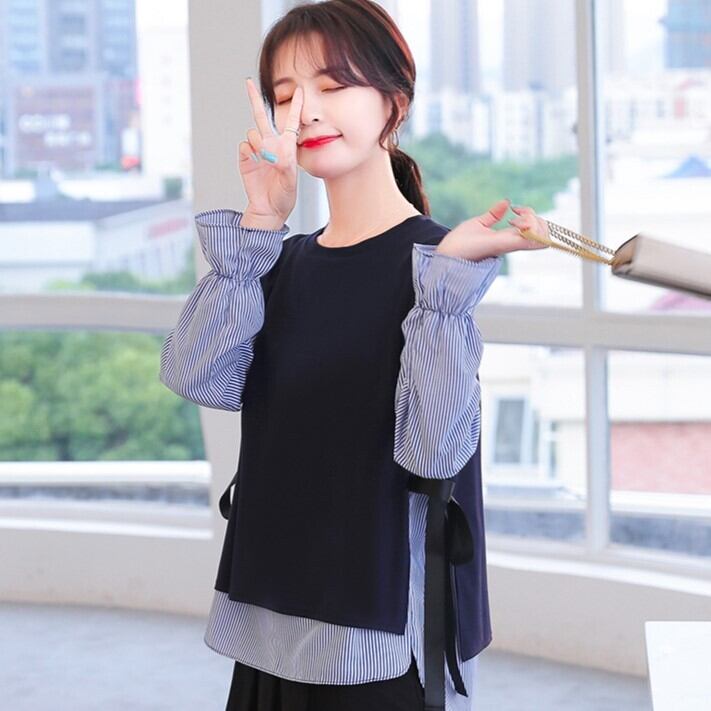 トップス シャツ カットソー 袖あり 長袖 フレアスリーブ ラウンドネック ストレート Iライン 切り替えデザイン ドッキング リボン 薄手 かわいい 大人可愛い きれいめ シンプル 大人 上品 おしゃれ お洒落 レトロ 大人可愛い 大人女子 ラブリー キュート ガーリー 存在感 抜け感 ストライプ 春 秋 10代 20代 30代 40代 レディース 女性用 ママ OL 通勤 通学 デート お出かけ 女子会 休日 イベント 旅行 着回し 普段使い モテ S M L XL 2XL