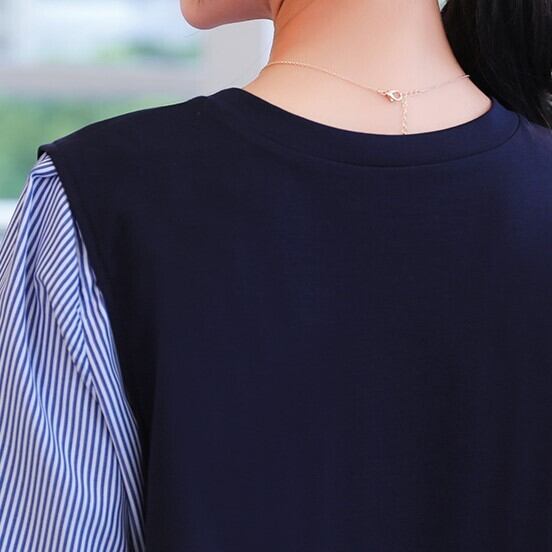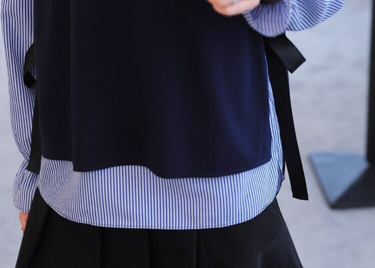 ストライプシャツとの組み合わせがさわやかなトップスです