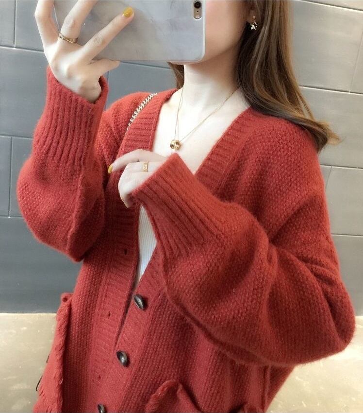 シンプルでルーズに着こなせるミディ丈ニットカーディガン。