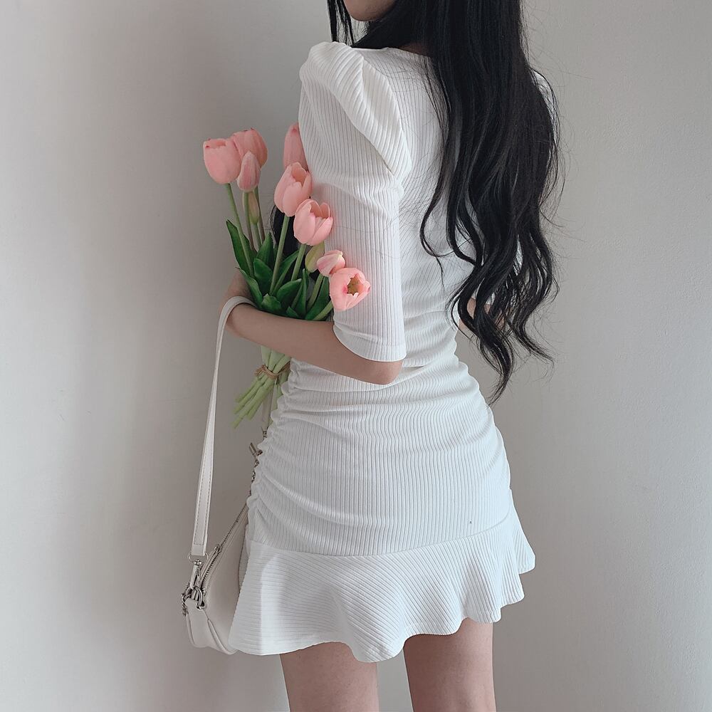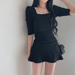 ワンピース デート ショート ショート丈 袖あり 半袖 スクエアネック スリム タイト 細身 かわいい 大人可愛い きれいめ シンプル カジュアル 大人 上品 おしゃれ お洒落 主役級 存在感 夏 10代 20代 30代 レディース 女性用 OL 学生 デート お出かけ 公園デビュー 女子会 休日 イベント 旅行 着回し 普段使い ファッション コーデ 楽ちん モテ トレンド 流行 インスタ映え フリーサイズ 白 ホワイト 黒 ブラック 青 ブルー ピンク