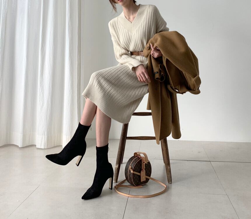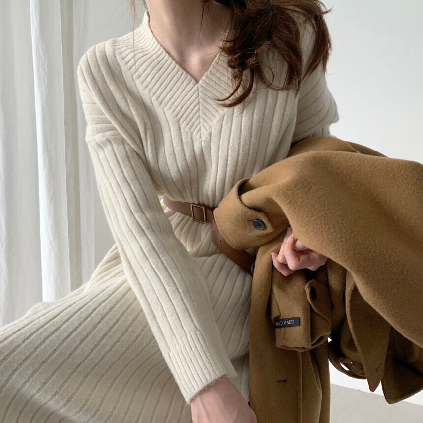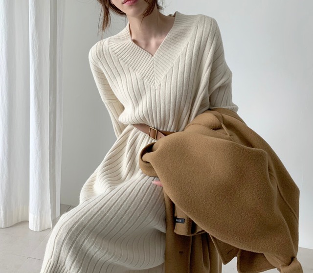 ワンピース デート ニットソー セーター ミモレ ミモレ丈 袖あり 長袖 Vネック かわいい 大人可愛い きれいめ シンプル カジュアル 大人 上品 おしゃれ お洒落 主役級 存在感 春 秋 冬 10代 20代 30代 レディース 女性用 OL 学生 デート お出かけ 公園デビュー 女子会 休日 イベント 旅行 着回し 普段使い ファッション コーデ 楽ちん モテ トレンド 流行 インスタ映え フリーサイズ 白 ホワイト 茶色 ブラウン