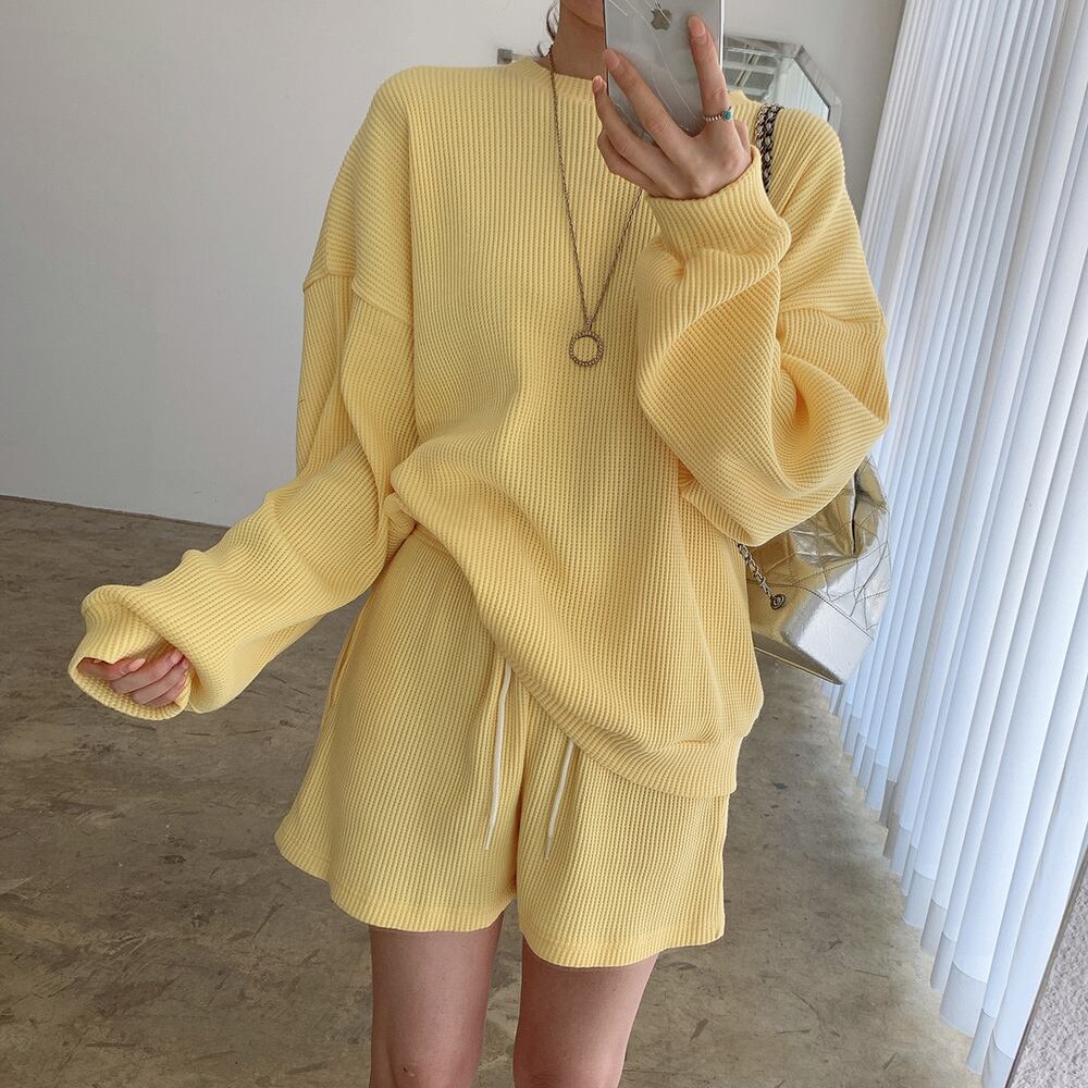 トップス ボトムス パンツ デート カットソー プルオーバー ショートパンツ ショート ショート丈 袖あり 長袖 ハイウエスト かわいい 大人可愛い きれいめ シンプル カジュアル 大人 上品 おしゃれ お洒落 主役級 存在感 春 秋 冬 10代 20代 30代 レディース 女性用 OL 学生 デート お出かけ 公園デビュー 女子会 休日 イベント 旅行 着回し 普段使い ファッション コーデ 楽ちん モテ トレンド 流行 インスタ映え フリーサイズ 白 ホワイト 青 ブルー 黄色 イエロー
