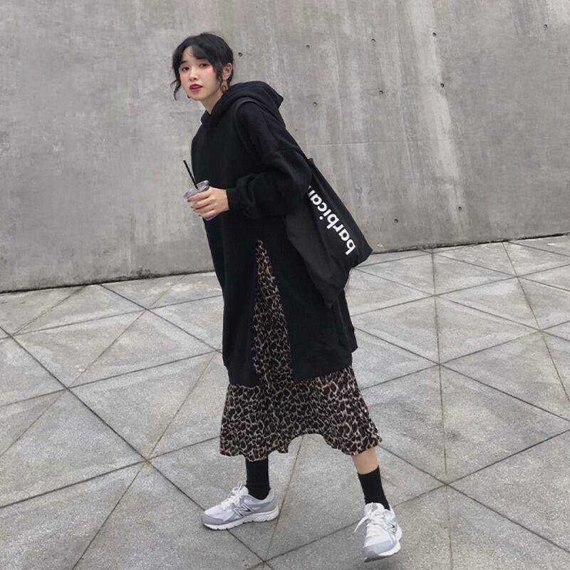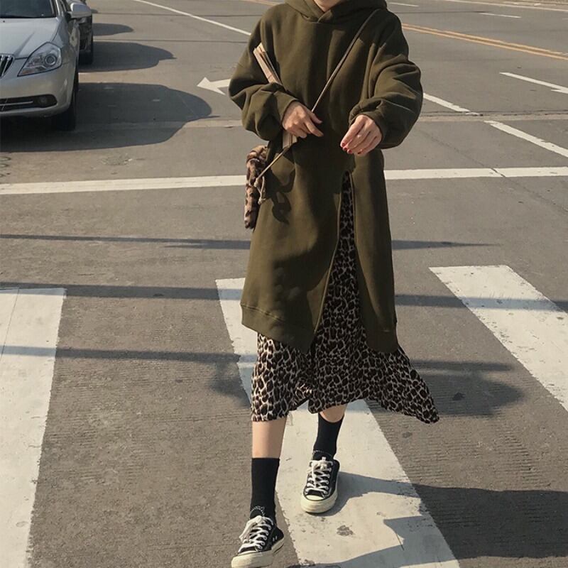 ワンピース セットアップ フェイクツーピースワンピース プルオーバー パーカー フーディー ミモレ丈 袖あり 長袖 襟なし ワイド 裾ファスナー 大人可愛い シンプル カジュアル 大人 お洒落 大人女子 こなれ感 ラフ ガーリー ルーズ 個性的 主役級 抜け感 無地 ヒョウ柄 レオパード 春 秋 冬 20代 30代 40代 ママ 通学 デート お出かけ 女子会 休日 旅行 着回し 普段使い 重ね着 韓国系 楽ちん 暖かい 体系カバー 定番 トレンド 流行 インスタ映え ゆったり グリーン ブラック