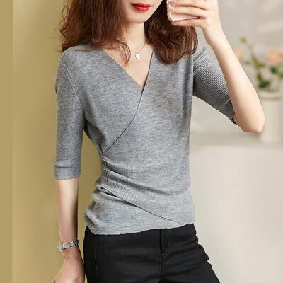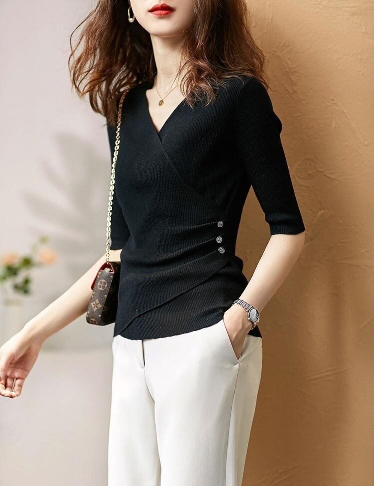 トップス デート ブラウス カットソー ニットソー セーター 袖あり 半袖 Vネック スリム タイト 細身 かわいい 大人可愛い きれいめ シンプル カジュアル 大人 上品 おしゃれ お洒落 主役級 存在感 春 秋 10代 20代 30代 レディース 女性用 OL 学生 デート お出かけ 公園デビュー 女子会 休日 イベント 旅行 着回し 普段使い ファッション コーデ 楽ちん モテ トレンド 流行 インスタ映え M L XL 2XL 黒 ブラック 緑 グリーン 灰色