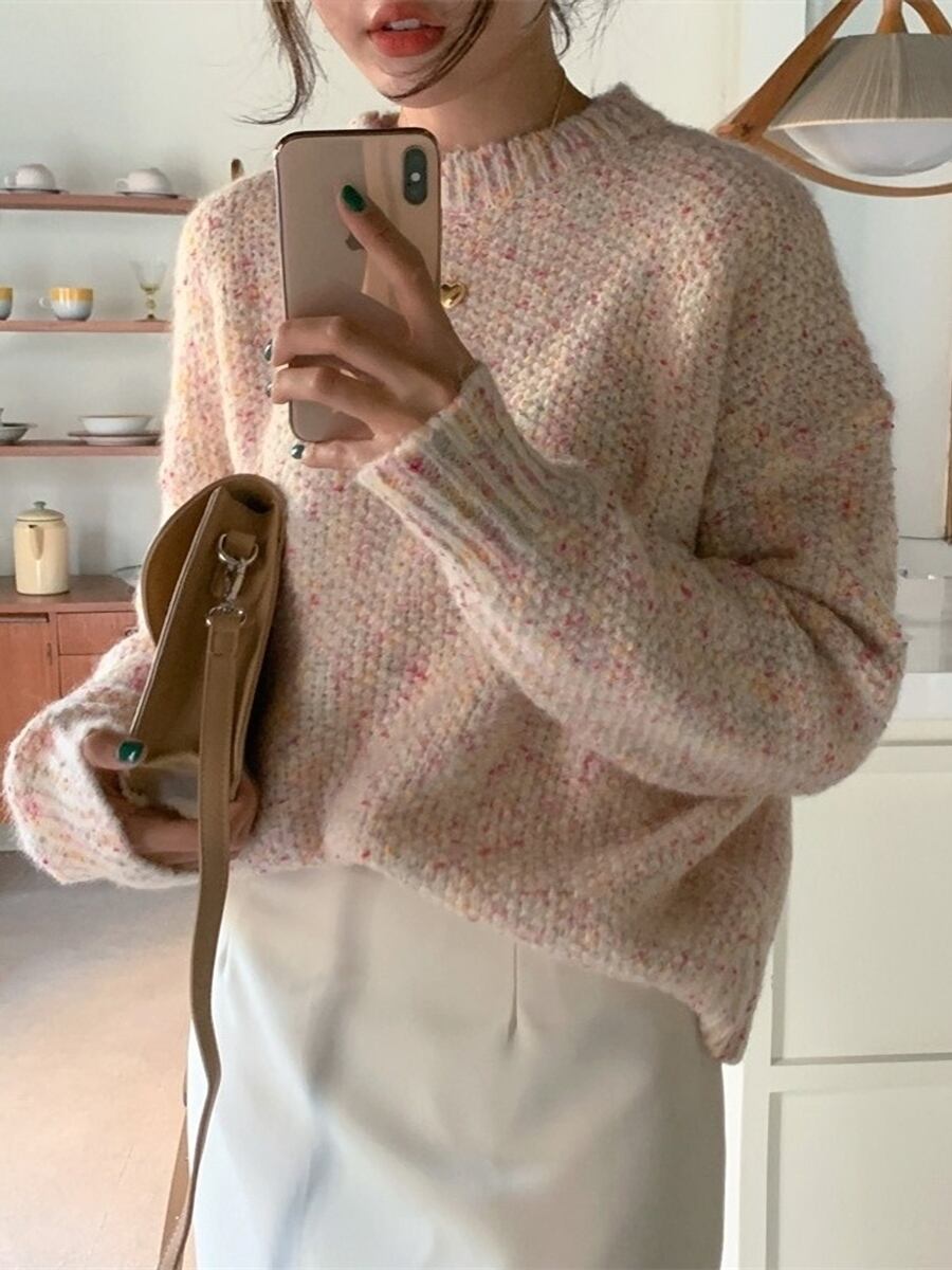 トップス セーター プルオーバー レギュラー丈 長袖 萌袖 レギュラー袖 ラウンドネック ストレート もこもこ ニット ウール 厚手可愛い カジュアル お洒落 大人女子 こなれ感 キュート とろみ感 甘い ドット柄 秋 冬 誕生日 クリスマス 10代 20代 30代 40代 女性用 ママ OL 通勤 学生 通学 デート 公園デビュー 女子会 休日 アウトドア イベント 旅行 高原 ホテル レストラン ショッピング 重ね着 コーデ 楽ちん 暖かい ギフト 韓国風 S M L ライトピンク アプリコット