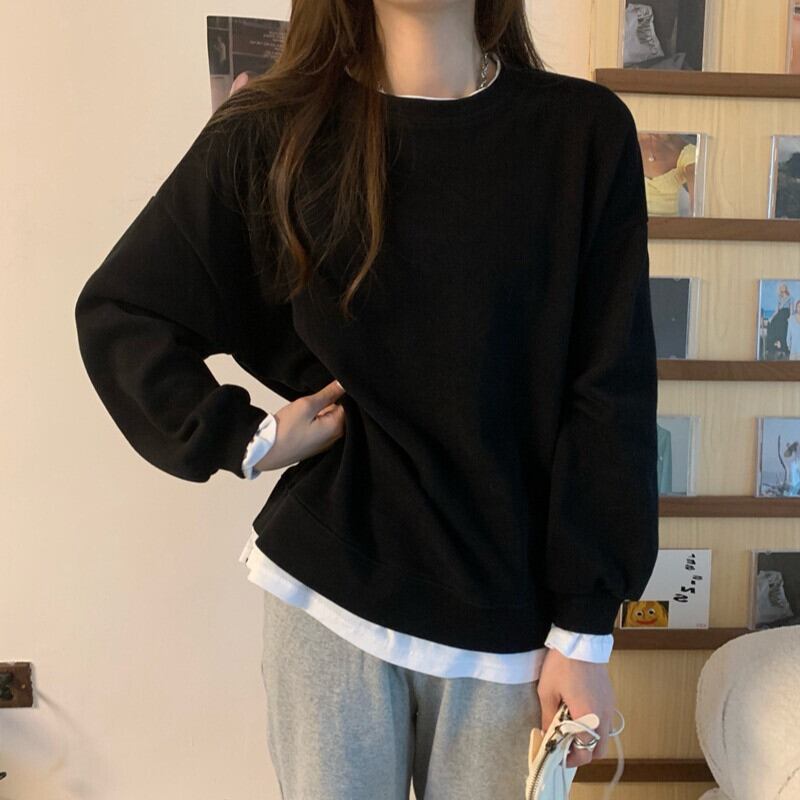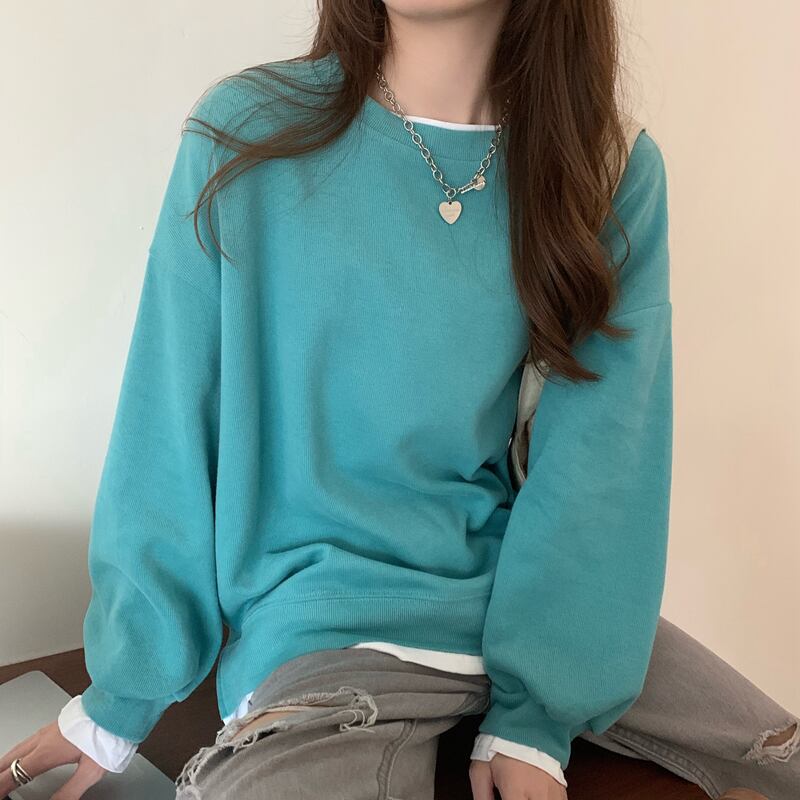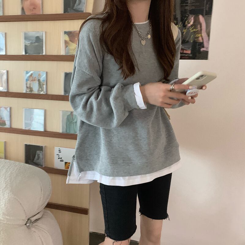 トップス カットソー レギュラー丈 長袖 レギュラー袖 ラウンドネック 襟なし ストレート コットン フェイクツーピース シンプル カジュアル 大人 おしゃれ かっこいい こなれ感 ラフ ボーイッシュ スポーティー ルーズ 抜け感 甘い 無地 春 秋 誕生日 10代 20代 30代 40代 レディース ママ 通勤 学生 通学 デート お出かけ 公園デビュー 女子会 お泊まり 休日 運動 アウトドア イベント 旅行 ショッピング 普段使い 韓国系 楽ちん ギフト S M L XL ゆる 紺 黒 青 灰色