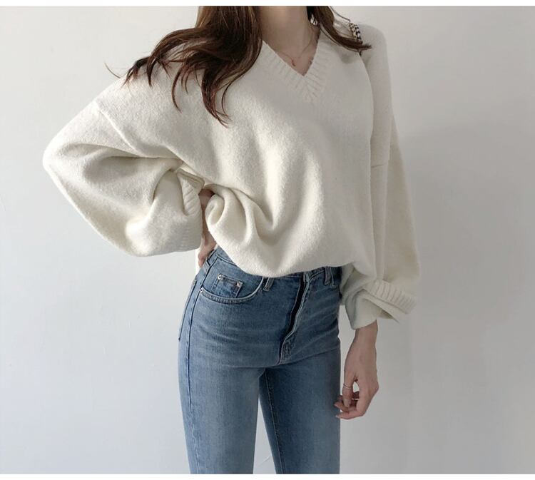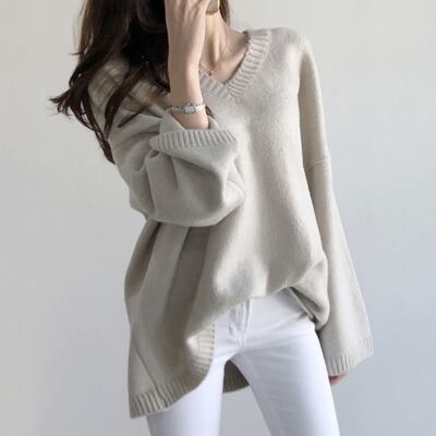 ルーズなVネックのニット