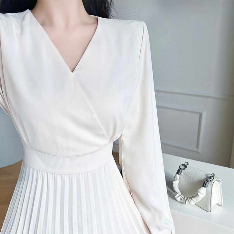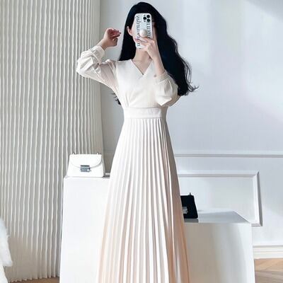 ワンピース ロング丈 袖あり 長袖 Vネック 襟なし プリーツ ウエストマーク ハイウエスト かわいい きれいめ シンプル カジュアル 上品 おしゃれ 大人可愛い 大人女子 こなれ感 個性的 セクシー エレガント 存在感 無地 春 夏 10代 20代 レディース 女性用 OL 通勤 学生 通学 デート お出かけ 女子会 お泊まり 休日 パーティー イベント ホテル 着回し 普段使い ファッション コーデ スタイル モテ 体型カバー プレゼント ギフト サイズ S M L XL 色展開 グレー