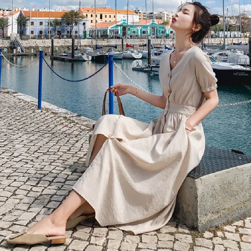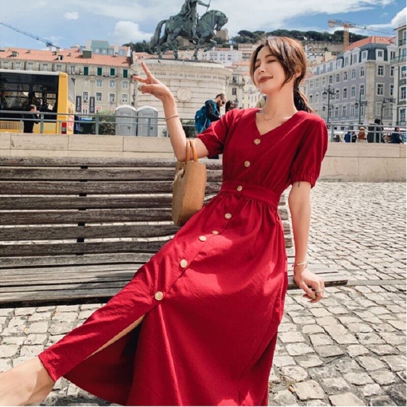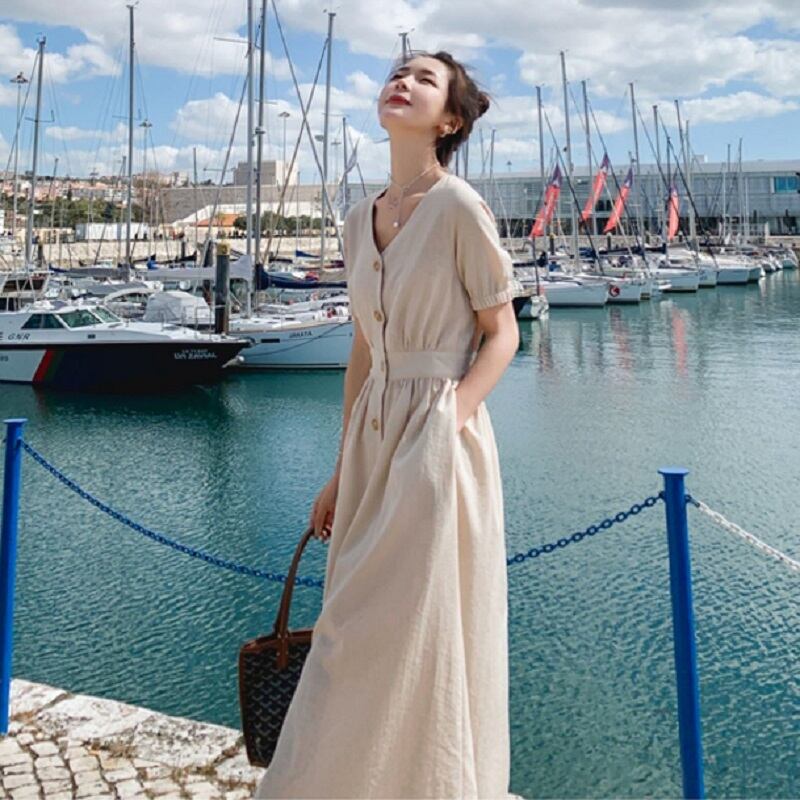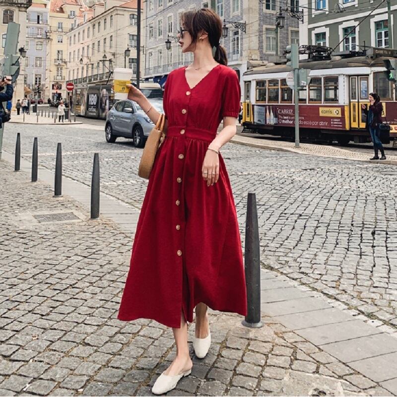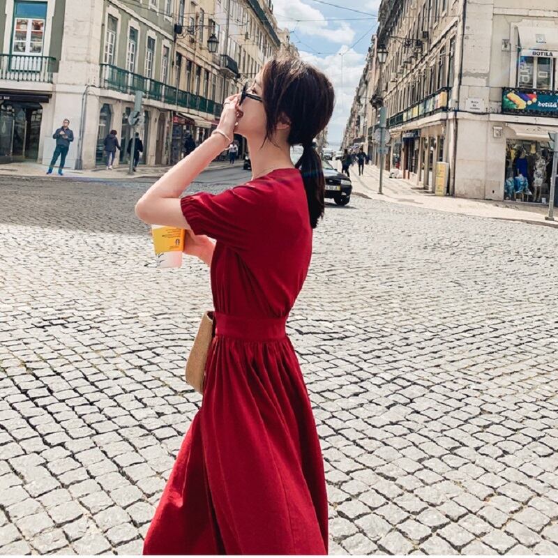 ワンピース ロング丈 袖あり 半袖 Vネック 襟なし ウエストマーク ハイウエスト かわいい きれいめ シンプル カジュアル 上品 おしゃれ 大人可愛い 大人女子 こなれ感 個性的 セクシー エレガント 存在感 無地 春 夏 10代 20代 レディース 女性用 OL 通勤 学生 通学 デート お出かけ 女子会 お泊まり 休日 パーティー イベント ホテル 着回し 普段使い ファッション コーデ スタイル モテ 体型カバー プレゼント サイズ S M L 色展開 レッド ベージュ