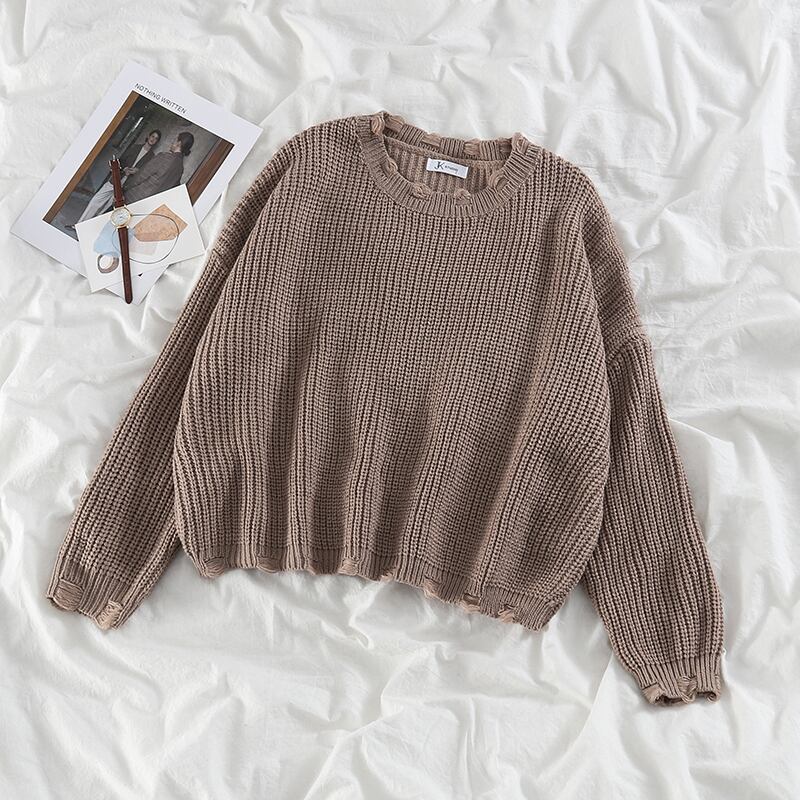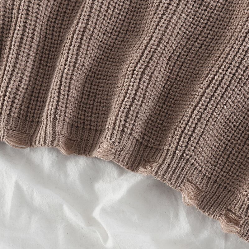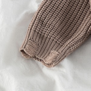 首回りと袖口の編み方が特徴的で目を引く一着です