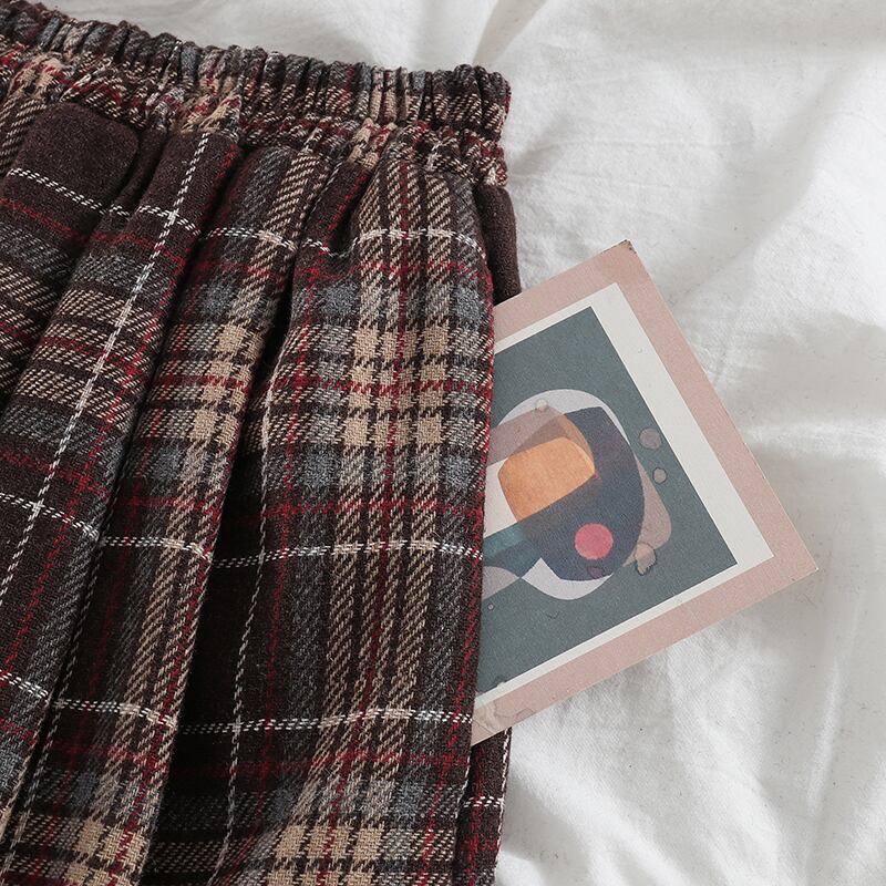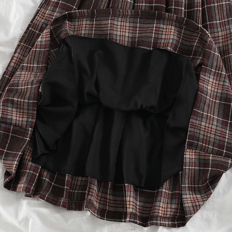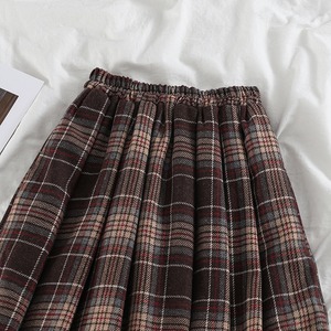 落ち着いた色のチェック柄スカートとセットで着こなせます