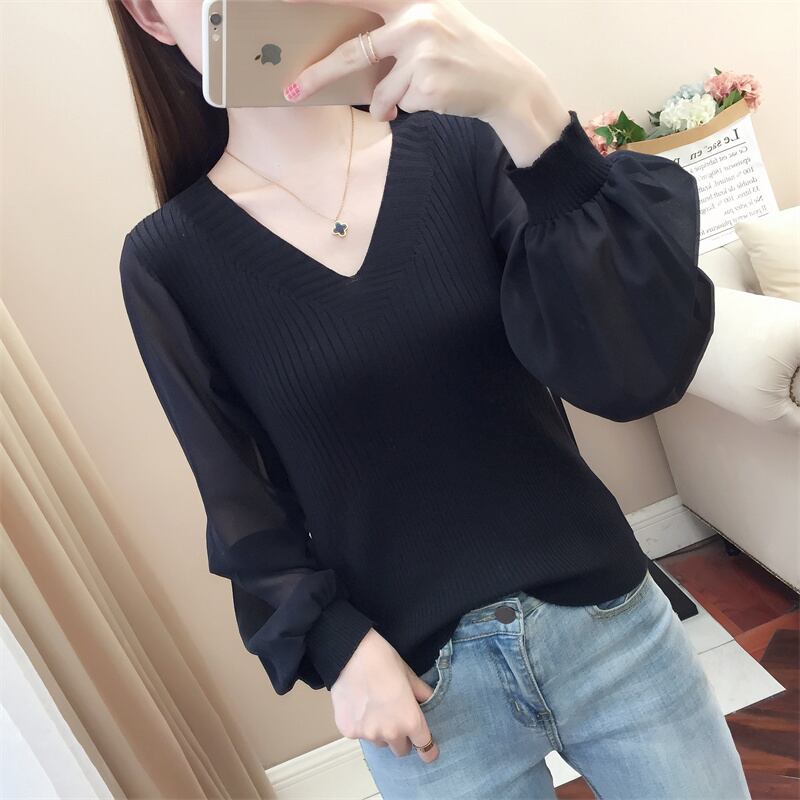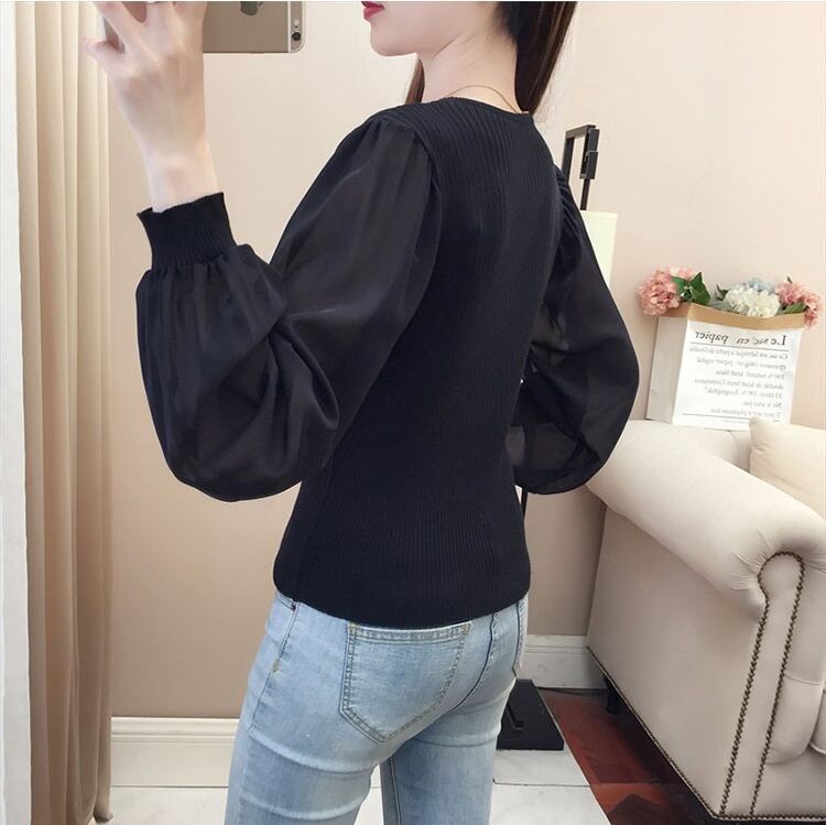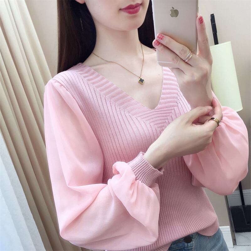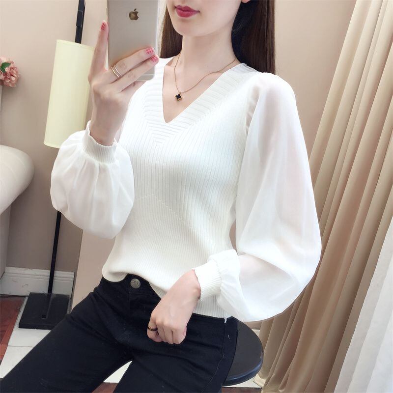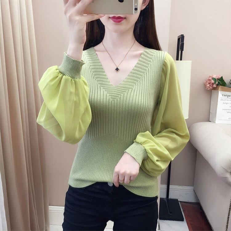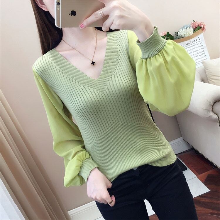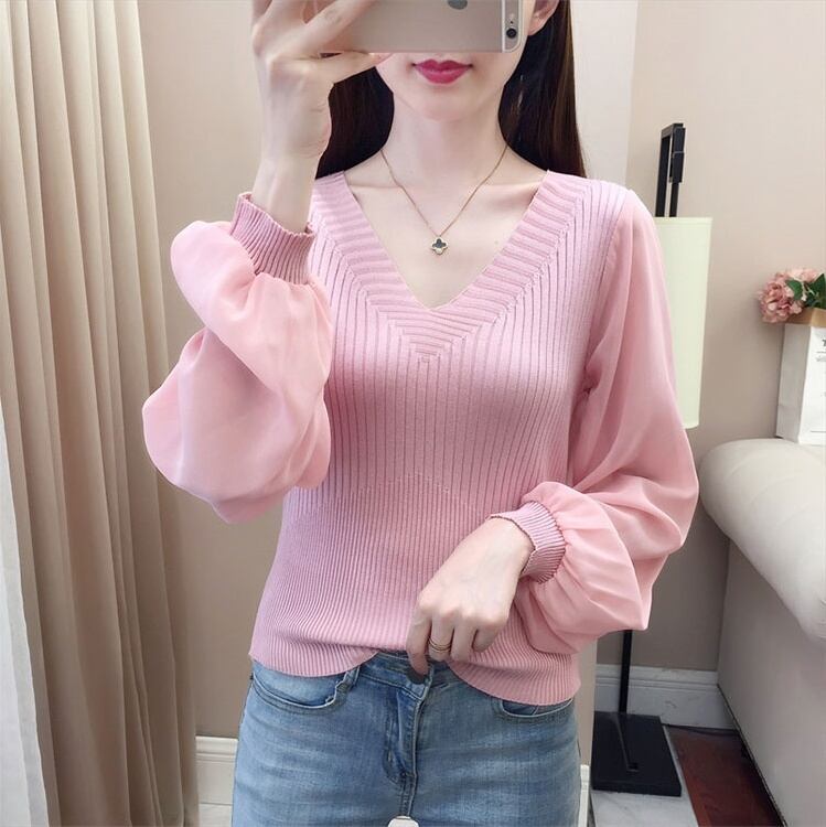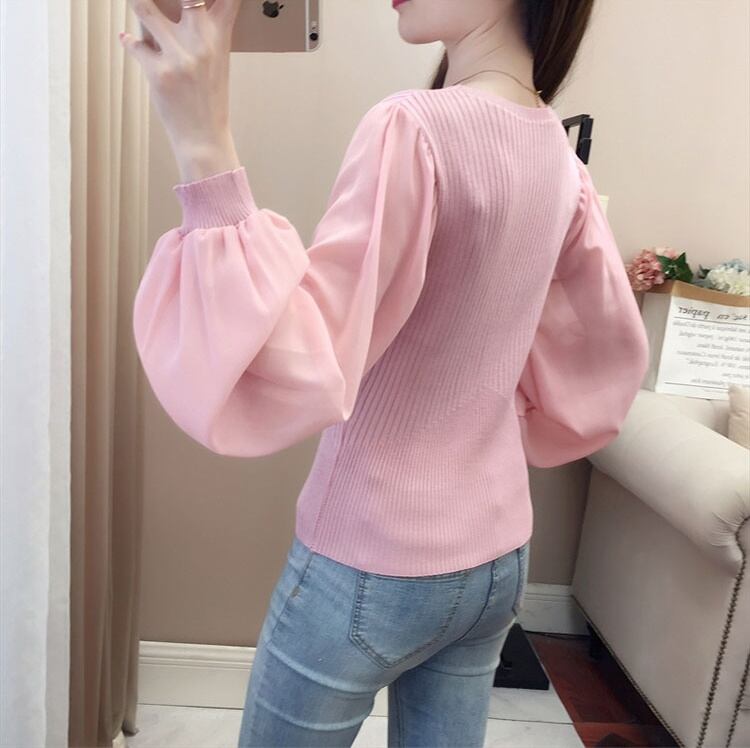 トップス ブラウス ニットブラウス プルオーバー ミディ丈 袖あり 長袖 ボリューム袖 Vネック 襟なし ワイド 切り替えデザイン ドッキング シフォン リブニット 透け感 ニット 薄手 異素材MIX 大人可愛い きれいめ シンプル カジュアル 大人 上品 お洒落 大人女子 こなれ感 ラフ エレガント 主役級 抜け感 無地 春 夏 秋 20代 30代 40代 ママ 通勤 通学 デート お出かけ 女子会 休日 旅行 着回し 普段使い 重ね着 定番 S M L XL ホワイト ピンク ブラック グリーン