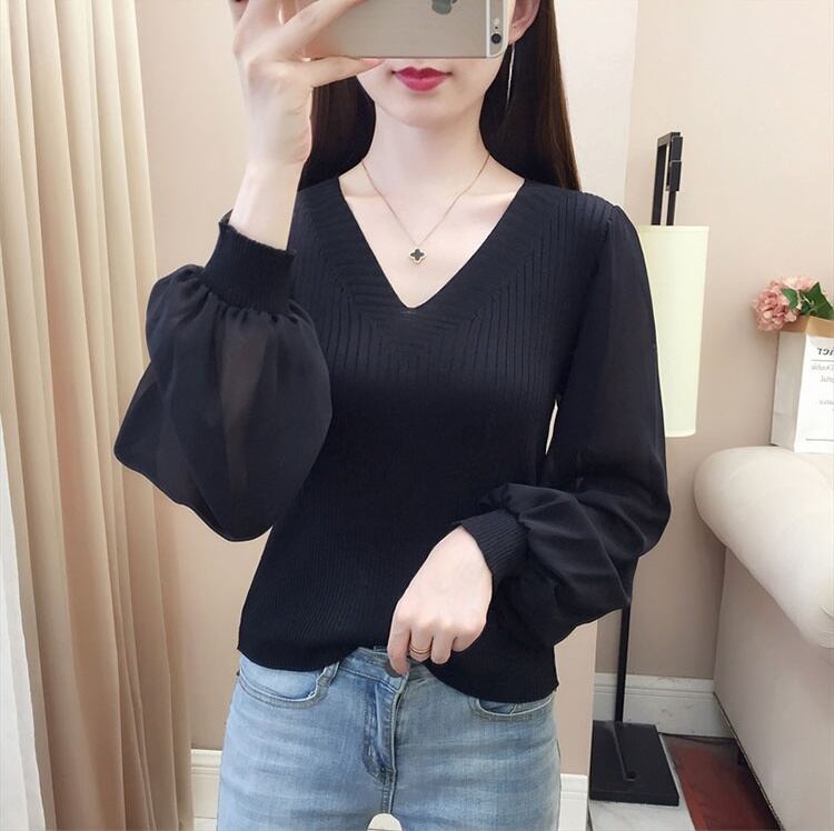 Vネックで首元すっきり見せ、程よく透け感のあるスリーブがこなれ感のある1枚。スカートやパンツにも合わせやすいアイテムです。