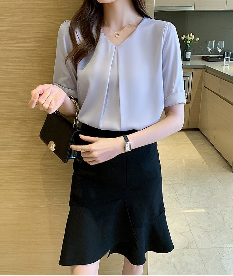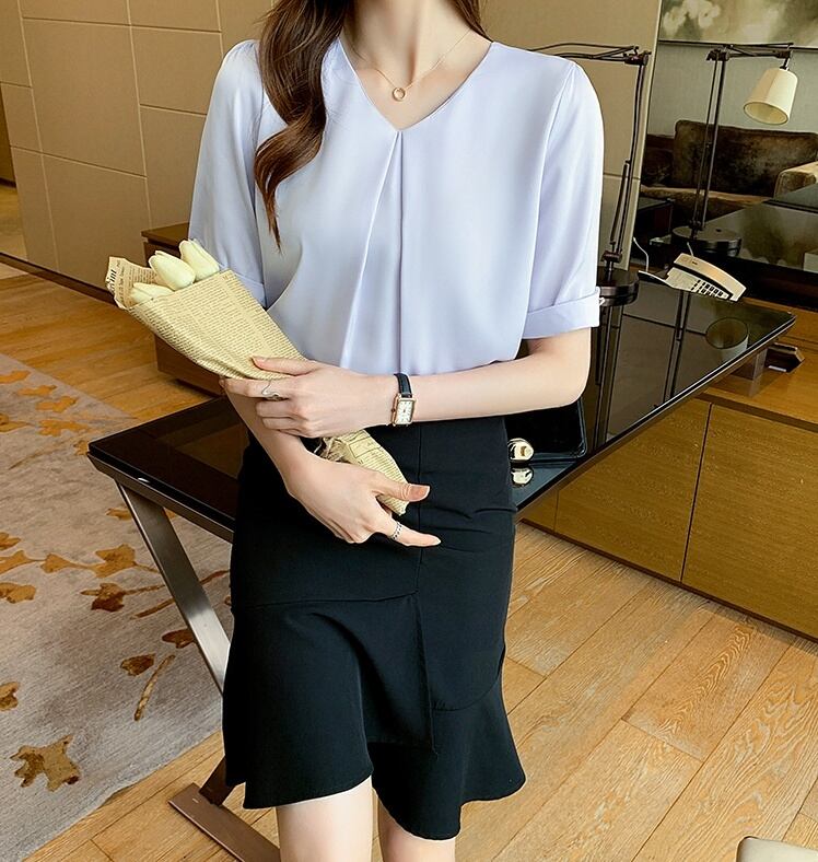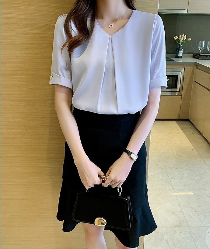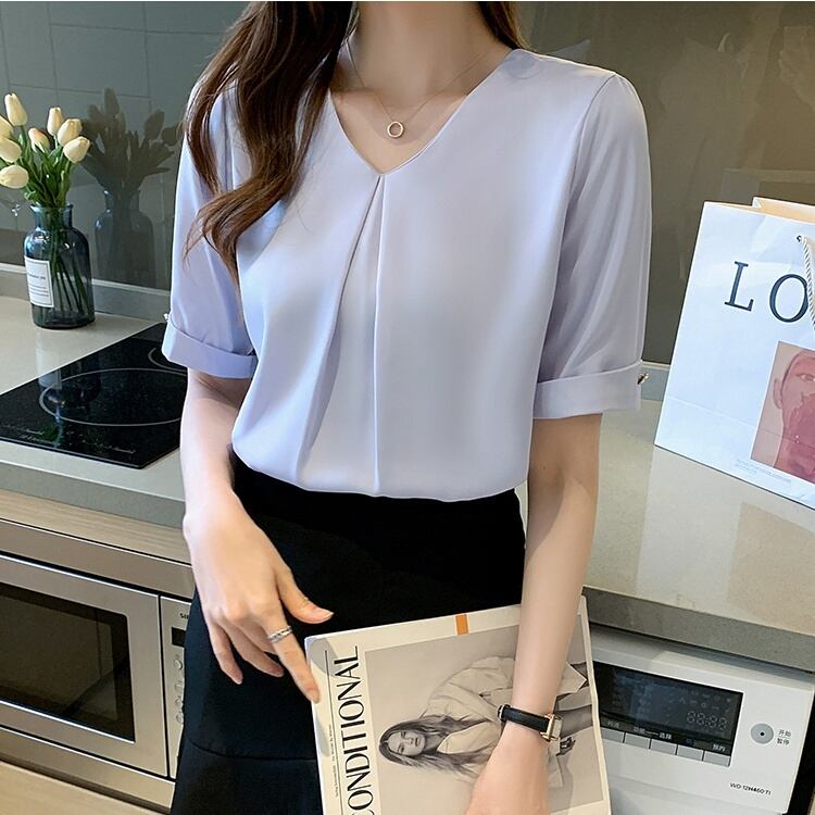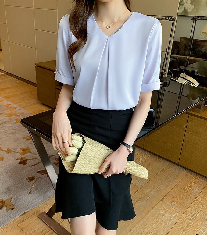 トップス ブラウス シフォンブラウス 白トップス ミディアム丈 袖あり 5分袖 Vネック ワイド シフォン フロントタック 透け感 薄手 大人可愛い きれいめ シンプル カジュアル 大人 上品 お洒落 大人女子 こなれ感 ラフ ガーリー エレガント 主役級 とろみ感 抜け感 無地 春 夏 秋 20代 30代 40代 ママ 通勤 通学 デート お出かけ 女子会 休日 旅行 着回し 普段使い 重ね着 オルチャン 楽ちん モテ 定番 トレンド 流行 インスタ映え S M L XL 2XL ブルー ホワイト