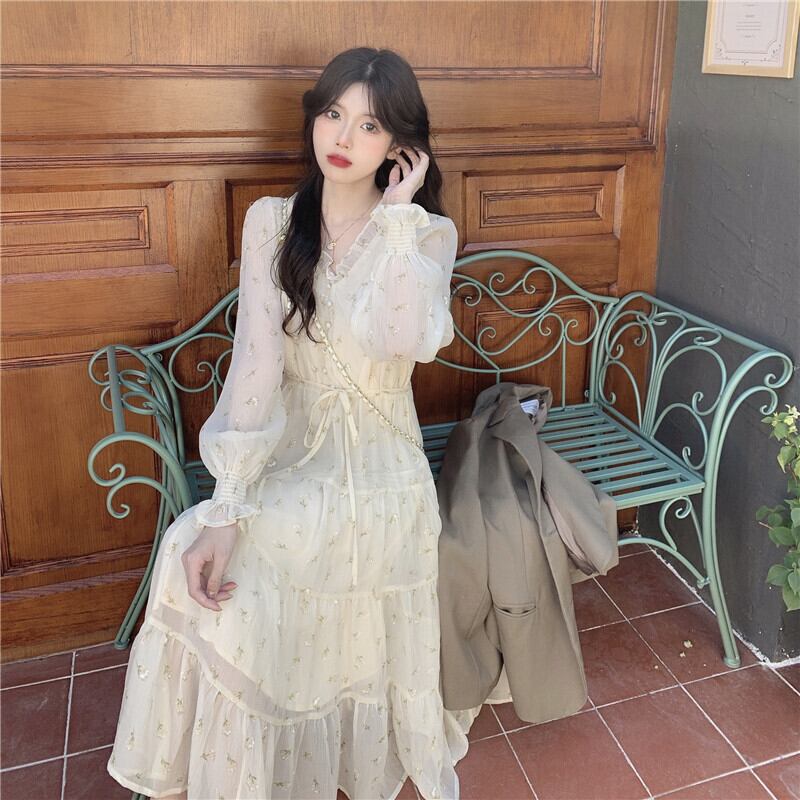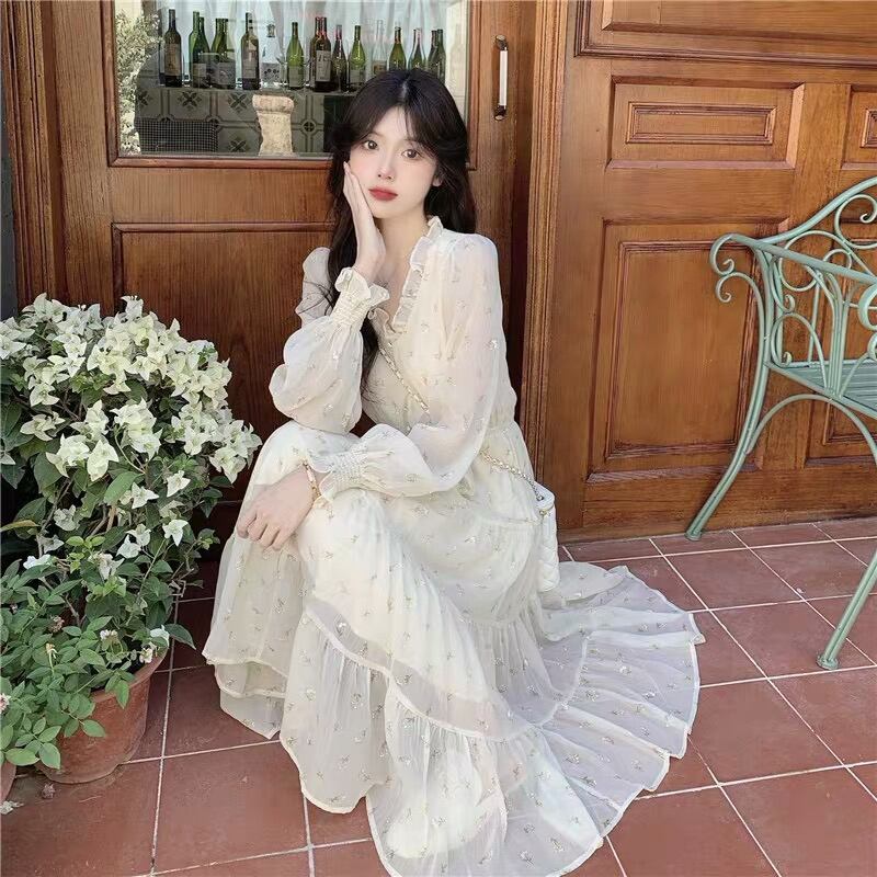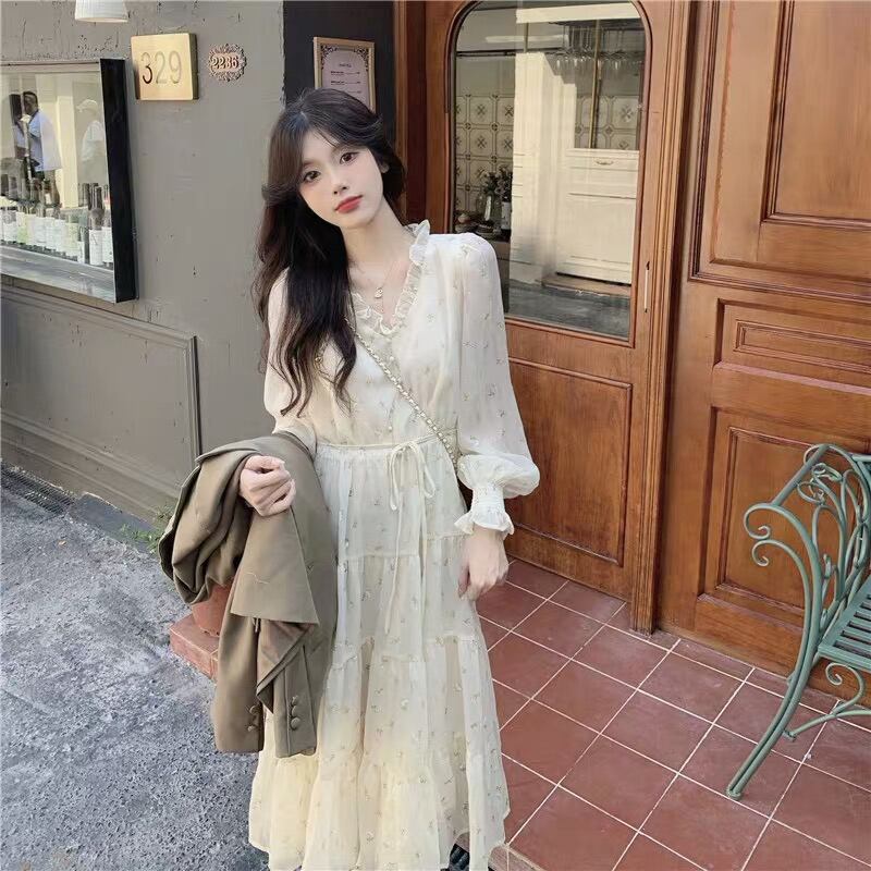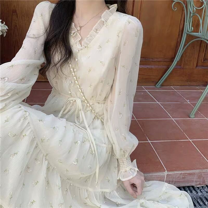 ワンピース プルオーバー ワンピドレス 膝下 ミドル丈 長袖 Vネック Aライン シフォン ハイウエスト かわいい 大人可愛い カジュアル 上品 お洒落 大人女子 ラブリー キュート ガーリー とろみ感 柄 小花柄 春 秋 誕生日 10代 20代 30代 女性用 ママ 通勤 学生 通学 デート お出かけ 女子会 お泊まり 休日 パーティー イベント リゾート 旅行 高原 ホテル ガーデン レストラン ショッピング モテ ギフト 安い インスタ映え 韓国風 フレンチ S M L XL ゆる オフホワイト
