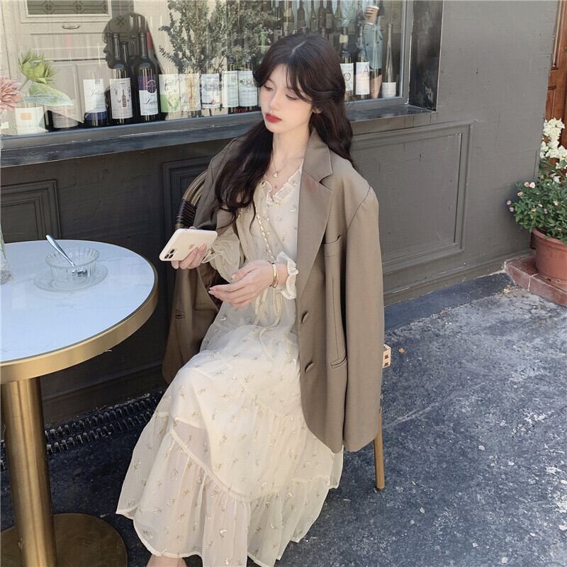 フレンチ風の花柄シフォンワンピース