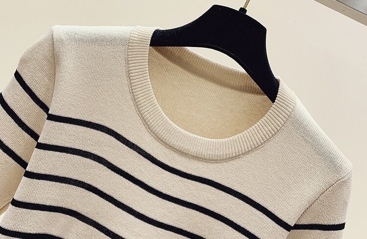 トップス ニットソー セーター ミディアム丈 袖あり 半袖 ラウンドネック 襟なし ワイド リブ サマーニット 大人可愛い きれいめ シンプル カジュアル 大人 上品 お洒落 大人女子 こなれ感 ラフ ガーリー 主役級 抜け感 ストライプ 春 夏 秋 20代 30代 40代 ママ 通勤 学生 通学 デート お出かけ 女子会 休日 旅行 着回し 普段使い 重ね着 楽ちん 体系カバー 定番 トレンド 流行 インスタ映え サイズ ゆったり ベージュ ホワイト ブルー