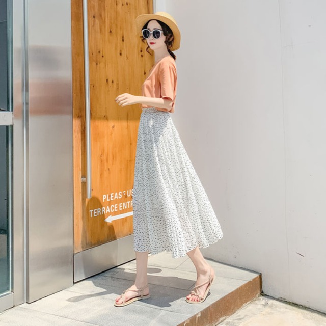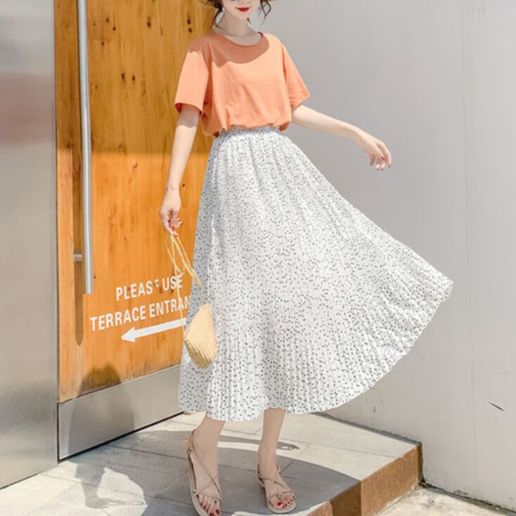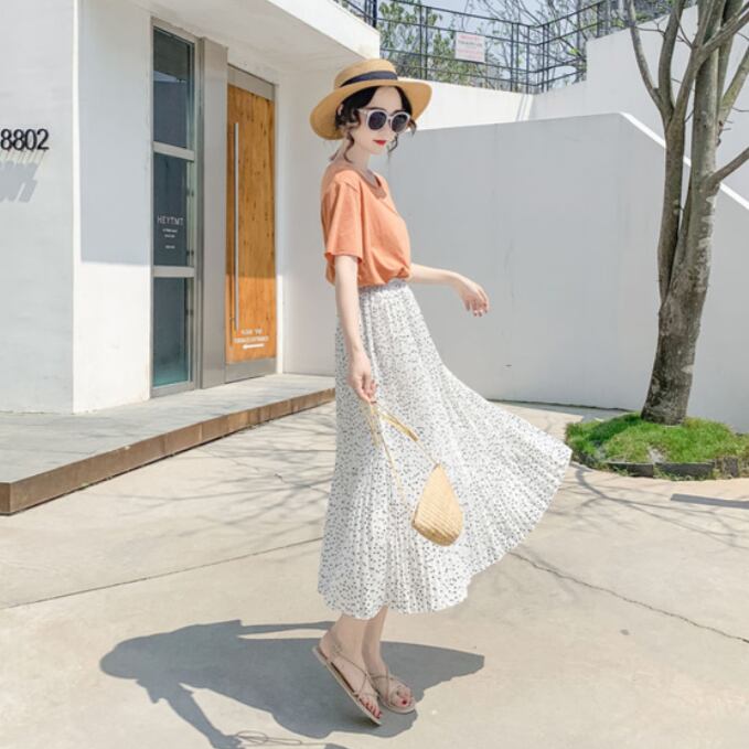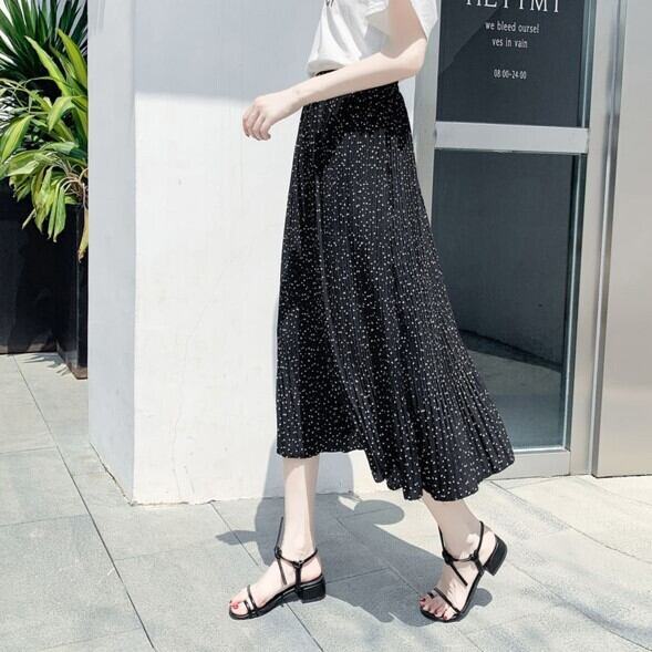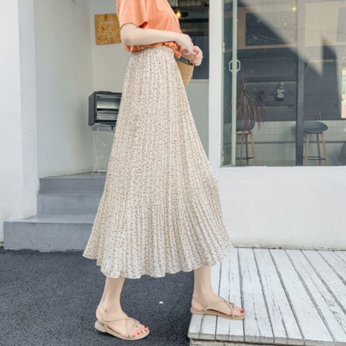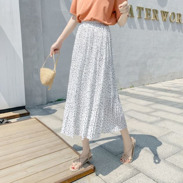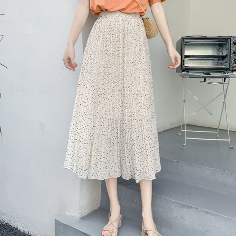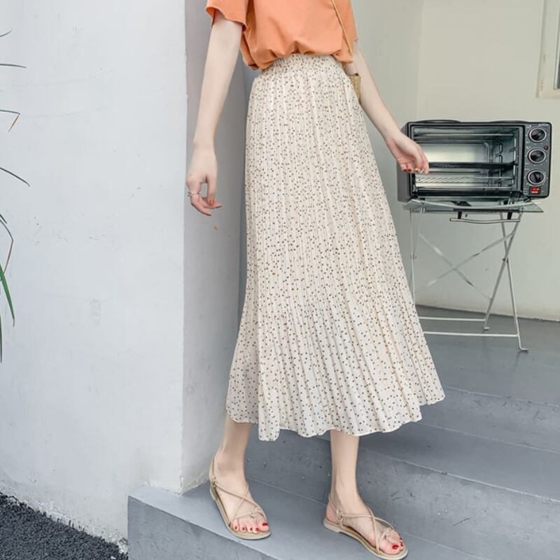 ロングスカート プリーツスカート フレアスカート 膝下 ロング丈 フレア Aライン シフォン 透け感 薄手 かわいい 大人可愛い きれいめ 大人 上品 おしゃれ お洒落 エキゾチック 大人可愛い 大人女子 ラフ ラブリー キュート ガーリー エレガント 存在感 とろみ感 抜け感 ドット柄 水玉 春 夏 10代 20代 30代 40代 レディース 女性用 ママ 学生 通学 デート お出かけ 女子会 休日 パーティー リゾート 旅行 着回し 普段使い モテ フリーサイズ ホワイト ブラック アプリコット