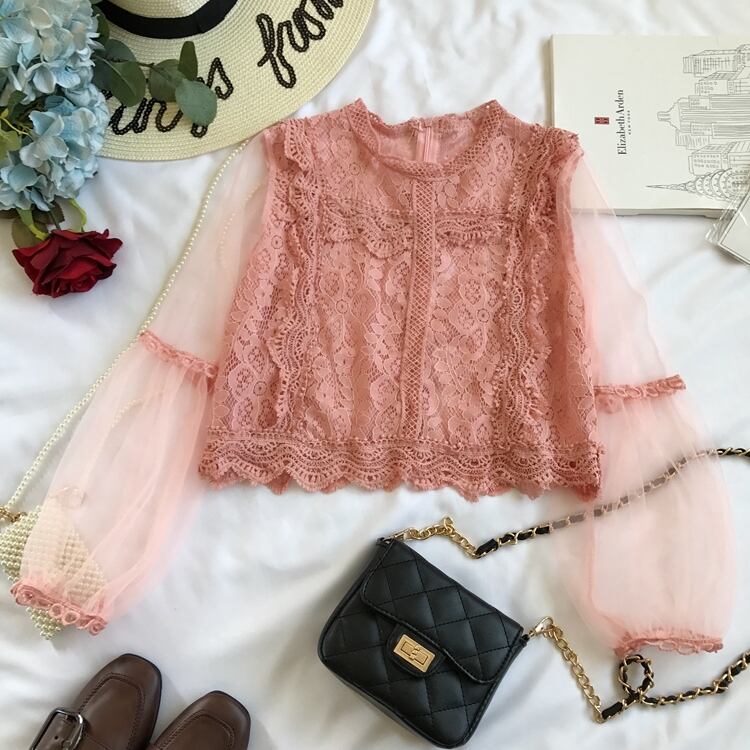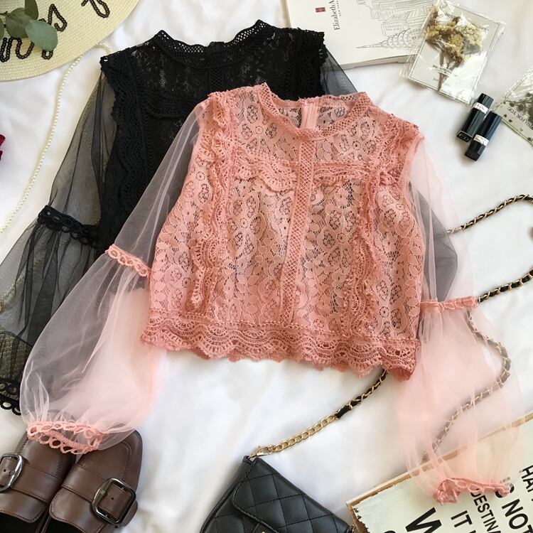 トップス ブラウス ショート丈 袖あり 長袖 ボリューム袖 ランタンスリーブ ラウンドネック 切り替え レース 透け感 シースルー 薄手 大人可愛い きれいめ フェミニン カジュアル 大人 上品 お洒落 大人女子 こなれ感 セクシー エレガント 主役級 抜け感 無地 春 夏 秋 謝恩会 20代 30代 40代 ママ 通勤 通学 デート お出かけ 女子会 休日 旅行 着回し 普段使い 体系カバー 定番 トレンド 流行 インスタ映え ワンサイズ グリーン ピンク ブラック ベージュ ホワイト あずき色