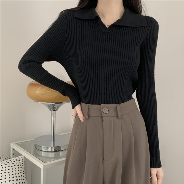 トップス カットソー 袖あり 長袖 Vネック 襟付き スリム 細身 ストレート Iライン かわいい 大人可愛い きれいめ 大人 上品 おしゃれ お洒落 エキゾチック 大人可愛い 大人女子 こなれ感 ラブリー キュート ガーリー クール エレガント 存在感 抜け感 秋 冬 10代 20代 30代 40代 レディース 女性用 OL 通勤 学生 通学 デート お出かけ 女子会 休日 イベント 旅行 ホテル レストラン 着回し 普段使い 重ね着 モテ フリーサイズ ホワイト ブラック カーキ アプリコット
