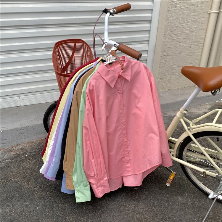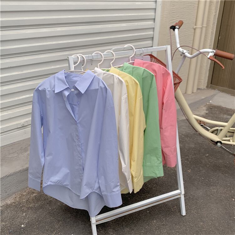 トップス シャツ レギュラー丈 長袖 レギュラー袖 襟付き ポロカラー ストレート 前開き シンプル カジュアル 大人 上品 お洒落 ラフ ルーズ シック 無地 春 秋 誕生日 10代 20代 30代 40代 50代 レディース ママ OL 通勤 学生 通学 デート お出かけ 公園デビュー 女子会 休日 イベント 旅行 海 高原 ホテル レストラン ショッピング 着回し 重ね着 ファッション コーデ 楽ちん モテ ギフト 安い インスタ映え ゆる ワンサイズ 黒 白 赤 青 緑 紫 黄色 カーキ ピンク
