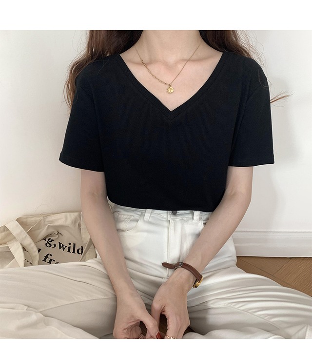 トップス デート Tシャツ カットソー 袖あり 半袖 Vネック かわいい 大人可愛い きれいめ シンプル カジュアル 大人 上品 おしゃれ お洒落 主役級 存在感 夏 10代 20代 30代 レディース 女性用 OL 学生 デート お出かけ 公園デビュー 女子会 休日 イベント 旅行 着回し 普段使い ファッション コーデ 楽ちん モテ トレンド 流行 インスタ映え S M L XL 白 ホワイト 黒 ブラック 灰色 グレー