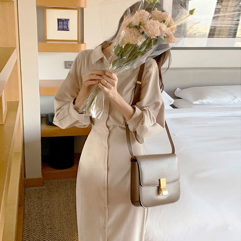 ワンピース デート シャツワンピース ミモレ ミモレ丈 袖あり 長袖 かわいい 大人可愛い きれいめ シンプル カジュアル 大人 上品 おしゃれ お洒落 主役級 存在感 春 秋 10代 20代 30代 レディース 女性用 OL 学生 デート お出かけ 公園デビュー 女子会 休日 イベント 旅行 着回し 普段使い ファッション コーデ 楽ちん モテ トレンド 流行 インスタ映え S M L XL 黒 ブラック ネイビー アプリコット