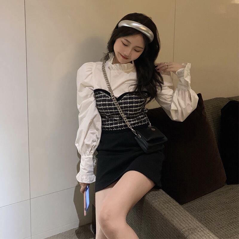 トップス スカート シャツ 白シャツ ミニスカート ミニ丈 ショート丈 長袖 襟付き スリム タイト Aライン フリル ファスナー ハイウエスト 薄手 2点セット ツーピース かわいい カジュアル お洒落 こなれ感 ラブリー キュート 個性的 存在感 とろみ感 無地 春 秋 誕生日 OL 通勤 学生 通学 デート お出かけ 女子会 お泊まり 休日 イベント リゾート 旅行 高原 ショッピング ファッション コーデ スタイル モテ ギフト トレンド インスタ映え 韓国風 S M 小さめ 黒 白