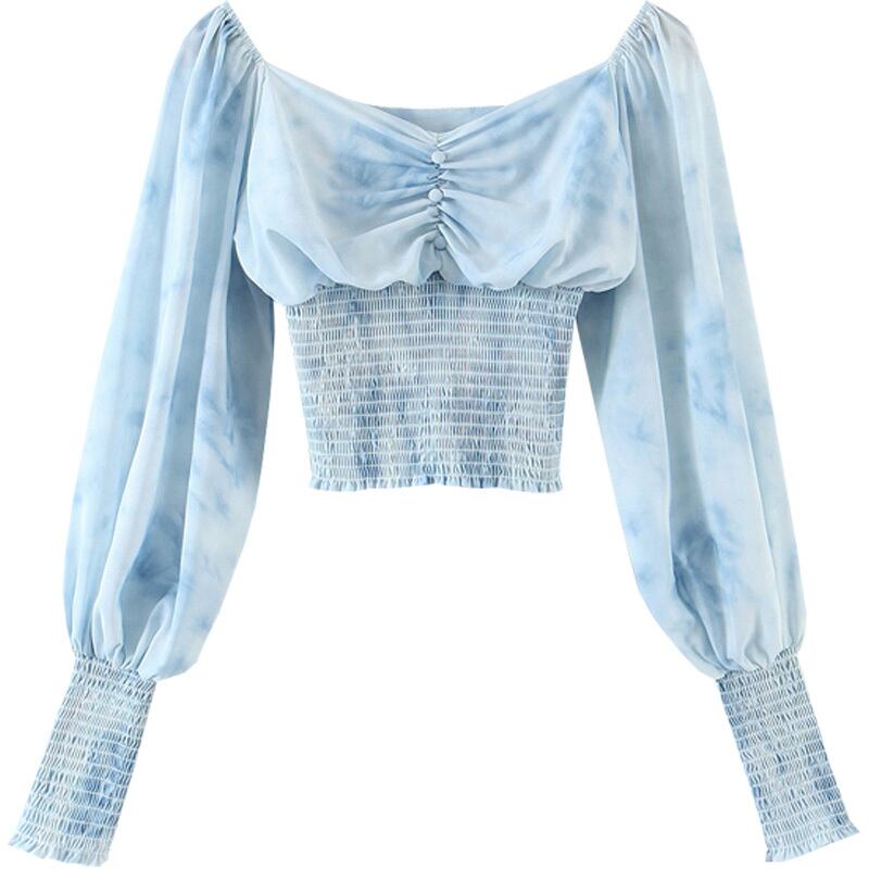 トップス カットソー プルオーバー ショート丈 長袖 パフスリーブ スクエアネック 襟なし スリム かわいい 大人可愛い カジュアル おしゃれ 大人女子 こなれ感 ラブリー キュート 個性的 セクシー 存在感 とろみ感 甘い シック 無地 春 秋 誕生日 10代 20代 30代 女性用 OL 通勤 学生 通学 デート お出かけ 女子会 お泊まり 休日 イベント リゾート 旅行 高原 ホテル レストラン ショッピング オーストラリア風 スタイル モテ プレゼント インスタ映え S M L ブルー