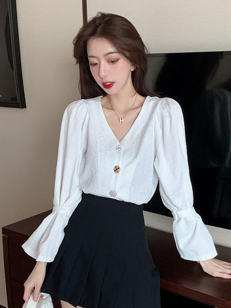 トップス デート シャツ ブラウス カットソー 袖あり 長袖 Vネック かわいい 大人可愛い きれいめ シンプル カジュアル 大人 上品 おしゃれ お洒落 主役級 存在感 春 秋 10代 20代 30代 レディース 女性用 OL 学生 デート お出かけ 公園デビュー 女子会 休日 イベント 旅行 着回し 普段使い ファッション コーデ 楽ちん モテ トレンド 流行 インスタ映え S M L XL 白 ホワイト 黒 ブラック