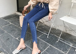 ボトムス パンツ Gパン デニムパンツ スキニーパンツ アンクル丈 スリム タイト 細身 アシンメトリー ポケット ハイウエスト 切りっぱなし デニム 大人可愛い きれいめ シンプル カジュアル 大人 お洒落 レトロ ヴィンテージ 大人女子 こなれ感 ガーリー 主役級 抜け感 無地 春 夏 秋 冬 20代 30代 40代 ママ 学生 通学 お出かけ 女子会 休日 旅行 着回し 普段使い 重ね着 韓国系 オルチャン モテ 美脚 定番 トレンド 流行 インスタ映え S M L ライトブルー ブルー ブラック