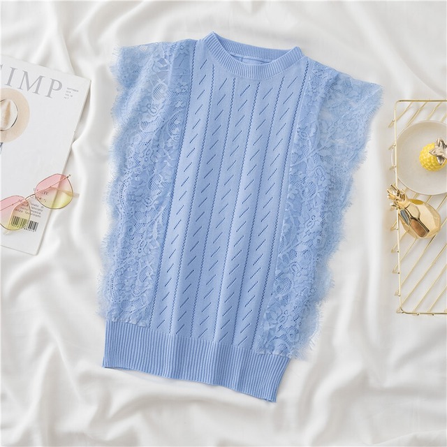 トップス ニットソー ノースリーブ ラウンドネック 細身 Iライン 切り替えデザイン ドッキング レース 透け感 シースルー サマーニット 薄手 異素材MIX かわいい 大人可愛い 大人 上品 おしゃれ お洒落 エキゾチック 大人可愛い 大人女子 こなれ感 ラブリー キュート ガーリー エレガント 存在感 とろみ感 抜け感 花柄 夏 10代 20代 30代 レディース 女性用 OL 通勤 学生 通学 デート お出かけ 女子会 休日 イベント リゾート 旅行 海 プール ホテル レストラン 着回し