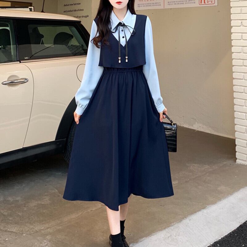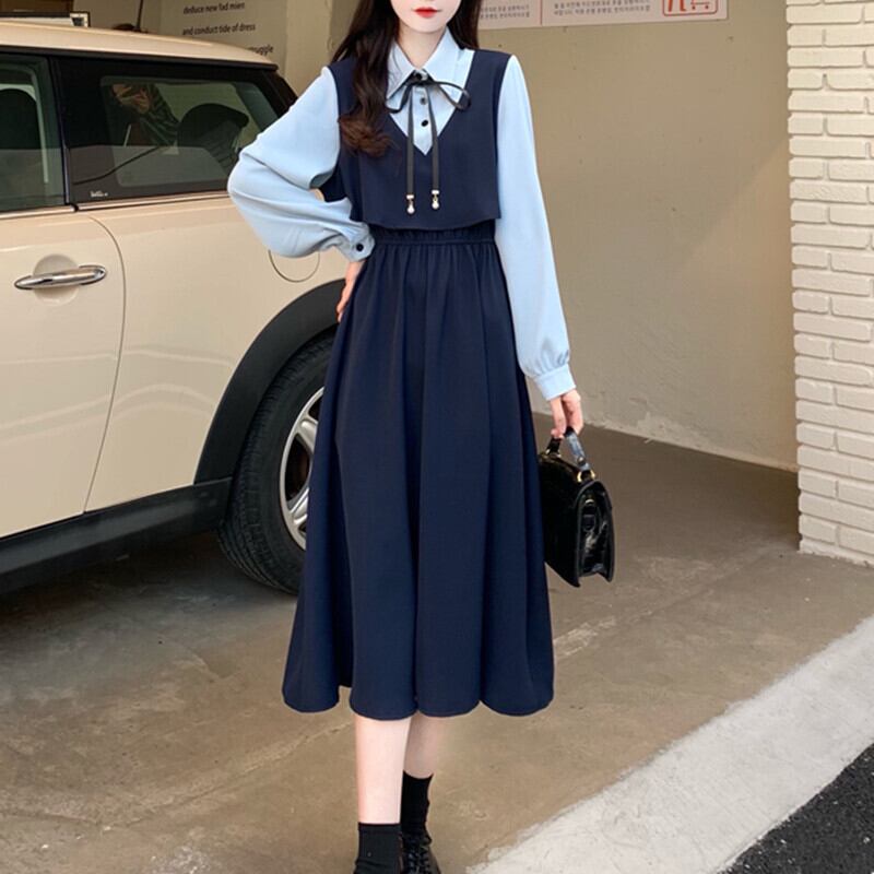 ワンピース フレアワンピース 膝下 ミディアム丈 袖あり 長袖 Vネック 襟付き フレア Aライン 切り替えデザイン ドッキング ハイウエスト かわいい 大人可愛い きれいめ シンプル 大人 上品 おしゃれ お洒落 レトロ 大人可愛い 大人女子 ラブリー キュート ガーリー エレガント フォーマル とろみ感 抜け感 秋 冬 謝恩会 クリスマス バレンタイン 10代 20代 30代 レディース 女性用 通勤 学生 通学 デート お出かけ 女子会 レストラン 普段使い M L XL 2XL 3XL 4XL