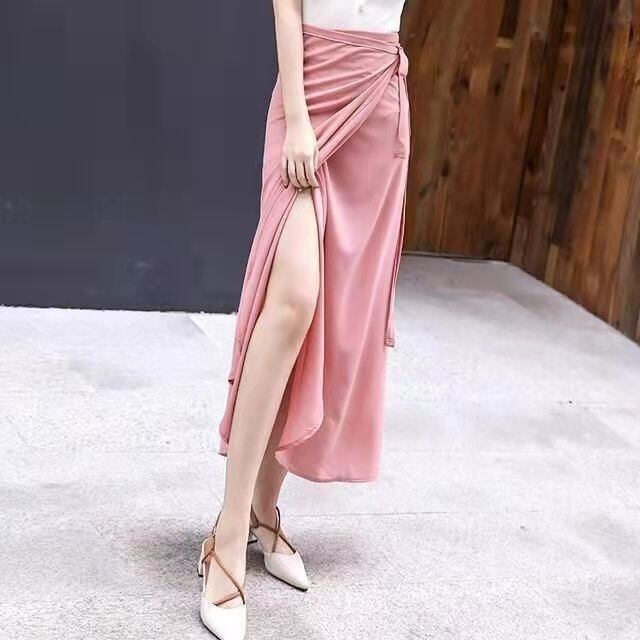 上品なシフォンのラップスカート
