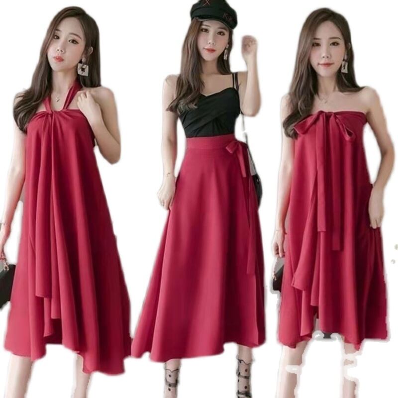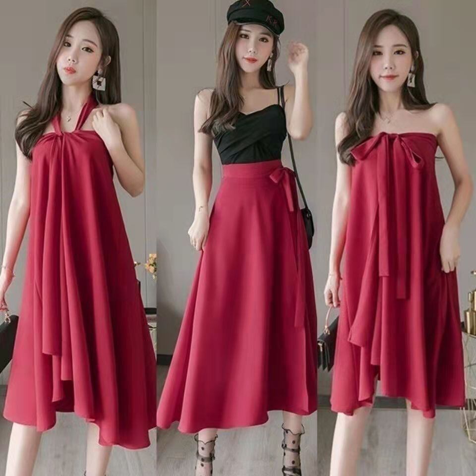 3パターンのスタイルにチェンジ出来るお洒落なワンピーススカートです