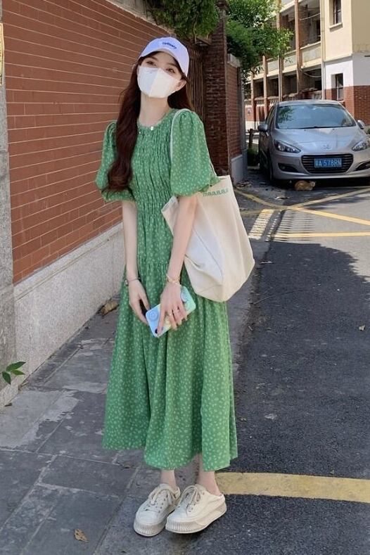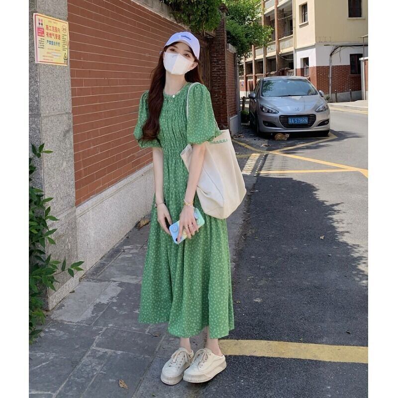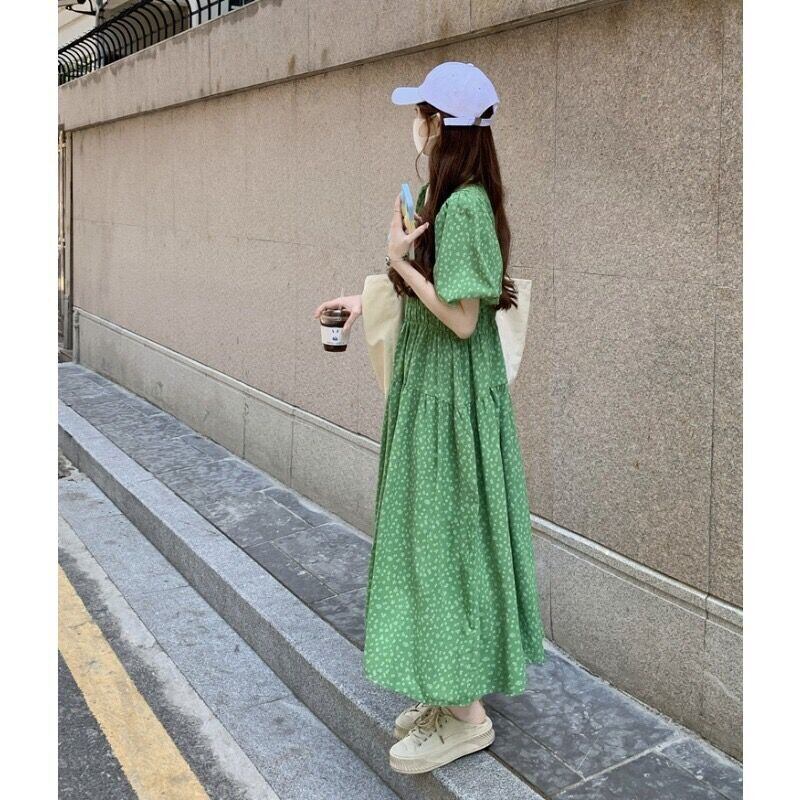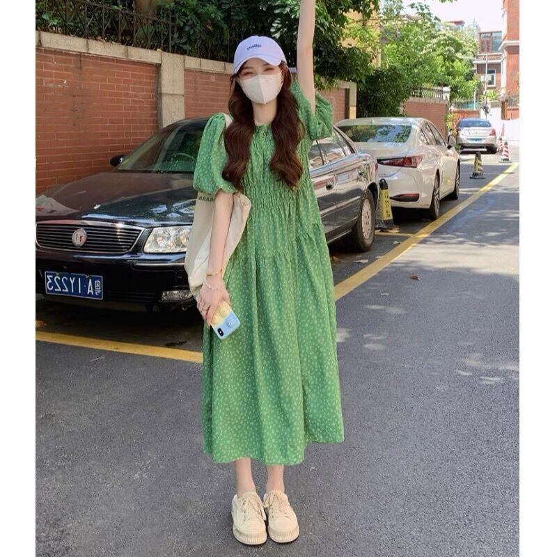 ワンピース プルオーバー ロング丈 半袖 パフスリーブ ラウンドネック かわいい 大人可愛い きれいめ カジュアル 大人 お洒落 大人女子 こなれ感 キュート ルーズ 個性的 存在感 とろみ感 甘い 柄 小花柄 夏 誕生日 10代 20代 30代 女性用 ママ OL 通勤 学生 通学 デート お出かけ 女子会 お泊まり 休日 イベント リゾート 旅行 海 プール 高原 ホテル ガーデン レストラン ショッピング ファッション 楽ちん モテ ギフト インスタ映え 韓国風 フランス S M L XL 緑