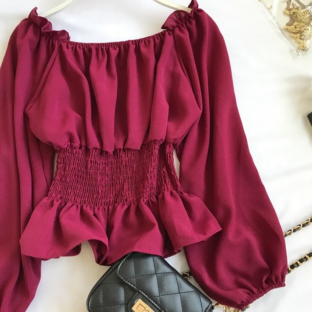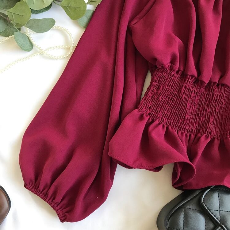トップス シャツ ショート丈 袖あり 長袖 パフスリーブ オフショルダー 細身 シフォン かわいい 大人可愛い きれいめ シンプル おしゃれ 大人女子 こなれ感 ラフ ラブリー キュート 個性的 無地 春 秋 10代 20代 レディース 女性用 OL 通勤 学生 通学 デート お出かけ 女子会 お泊まり 休日 イベント リゾート 旅行 ホテル レストラン 着回し 普段使い ファッション スタイル プレゼント サイズ ワンサイズ 色展開 ホワイト ピンク ワインレッド アプリコット ライトブルー