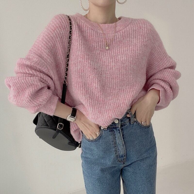 トップス セーター ミディアム丈 袖あり 長袖 パフスリーブ ラウンドネック 襟なし ハイウエスト かわいい 大人可愛い きれいめ シンプル カジュアル 大人 おしゃれ こなれ感 メンズライク ボーイッシュ ラブリー キュート 個性的 無地 秋 冬 10代 20代 レディース 女性用 OL 通勤 学生 通学 デート お出かけ 女子会 お泊まり 休日 イベント 旅行 レストラン 着回し 普段使い 韓国系 ファッション コーデ スタイル モテ プレゼント ギフト サイズ ワンサイズ 色展開 グレー ピンク