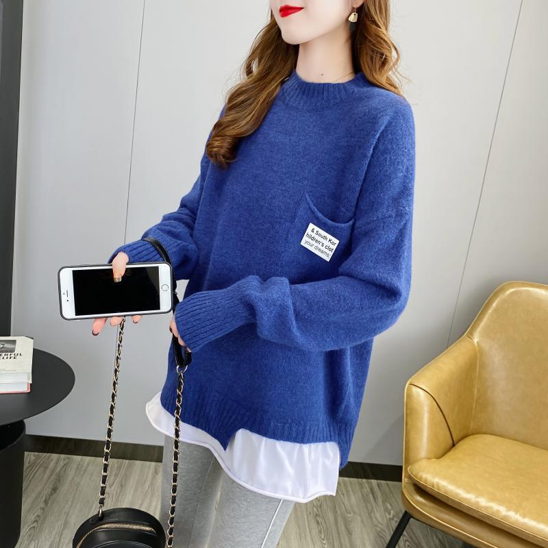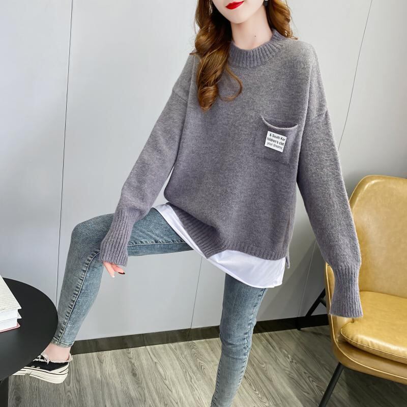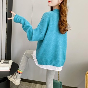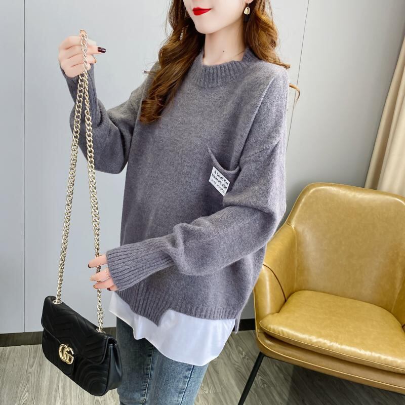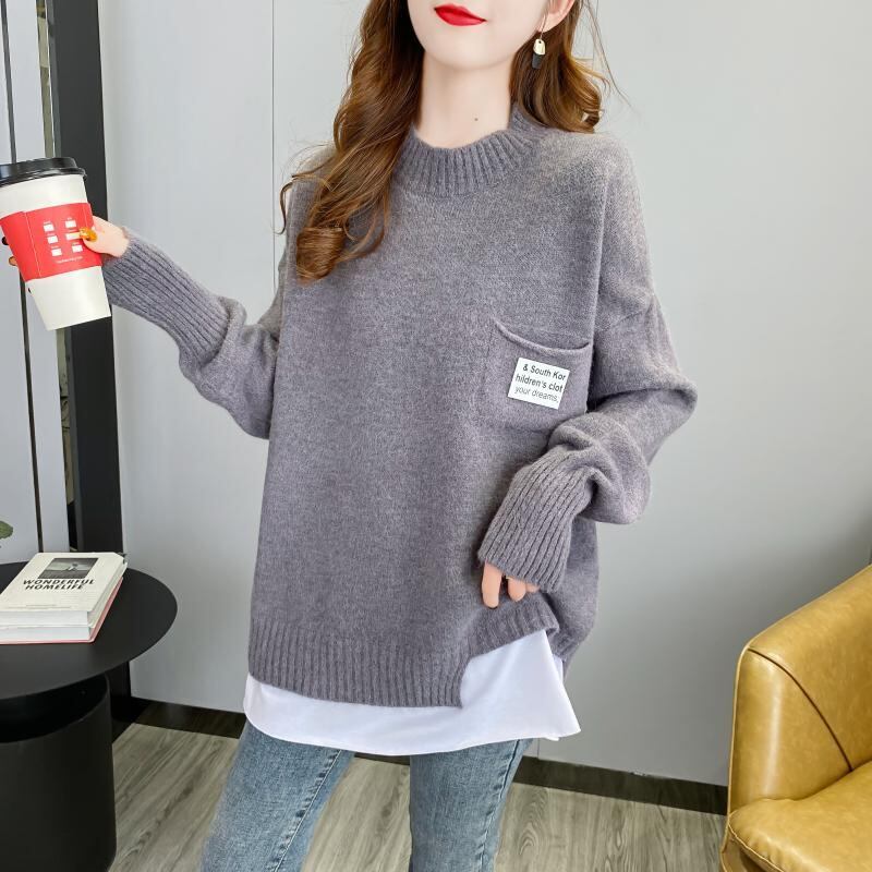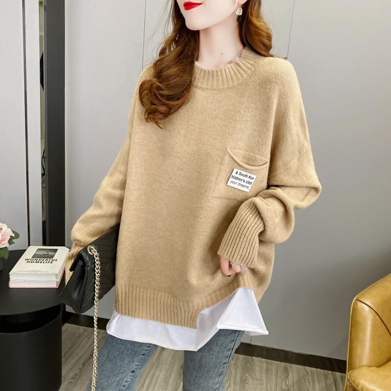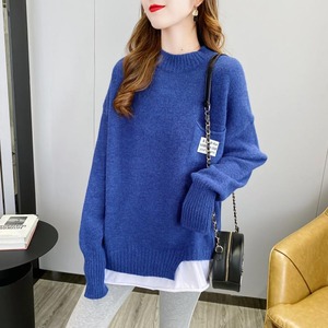 トップス ニットソー レギュラー丈 長袖 レギュラー袖 ラウンドネック ニット ウール フェイクツーピース 可愛い カジュアル お洒落 ラフ キュート ルーズ 個性的 クール とろみ感 無地 秋 冬 誕生日 クリスマス 10代 20代 30代 40代 女性用 ママ OL 通勤 学生 通学 デート お出かけ お泊まり 休日 アウトドア 旅行 ホテル ショッピング 楽ちん 暖かい モテ ギフト 安い インスタ映え ヨーロッパ S M L XL 2XL 3XL レイクブルー ダークブルー グレー カーキ